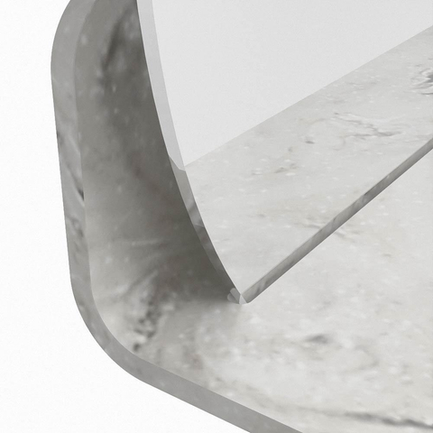 Le plan de couverture, avec ses coins arrondis, offre un espace de rangement pratique pour vos besoins quotidiens. Le miroir est subtilement encastré dans le plan de couverture, ce qui donne une apparence moderne et élégante.
