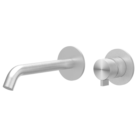 IVY Tribe Robinet mélangeur lavabo - 2 trous - avec partie encastrable - montage mural - bec courbé - démarrage à froid - inox 316 - brossé