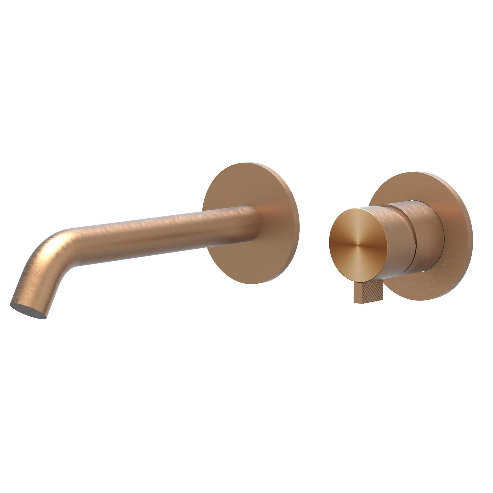 IVY Tribe Ensemble de robinet mélangeur - 2 trous - avec partie encastrable - montage mural - bec courbé - démarrage à froid - INOX316 - cuivre brossé mat PVD