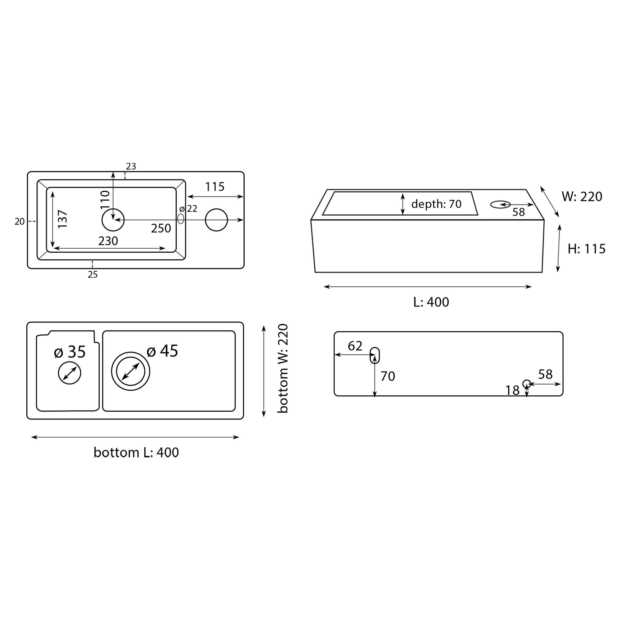 - Doté d’un seul trou de robinet, adapté à un petit robinet de lavabo de votre choix