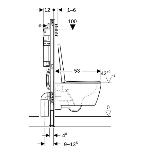 Le châssis en acier autoportant offre une base solide pour votre WC suspendu et est conçu pour supporter une charge durable et en toute sécurité. Le réservoir encastré en matière synthétique avec commande à deux boutons (double chasse) permet de choisir entre une petite chasse d’environ 2 litres et une grande chasse jusqu’à 7 litres. Vous économisez ainsi de l’eau sans effort, sans sacrifier le confort de rinçage. La commande manuelle via la plaque de commande Sigma est fiable et simple d’utilisation, tandis que les pièces restent facilement accessibles pour l’entretien via l’ouverture de trappe de service située derrière la plaque de commande.