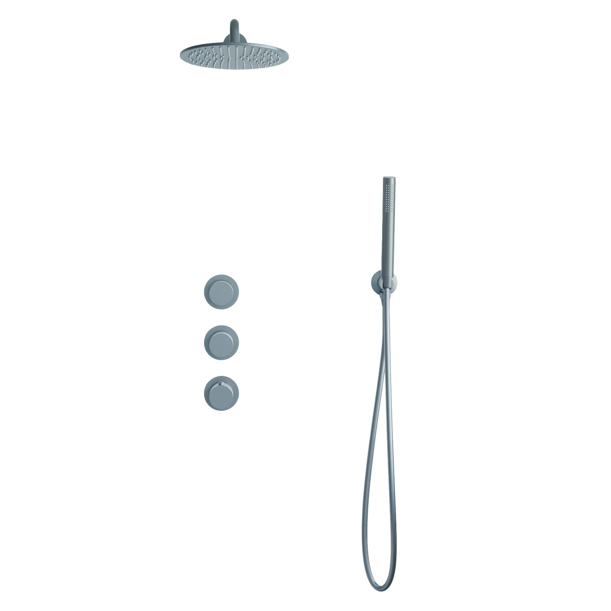 Fortifura Nebbio Ensemble de douche pluie - mitigeur encastré - élément encastré - coude mural de raccordement - flexible de douche lisse - douchette à main sur barre - bras mural 35cm - pomme de tête ronde - finition PVD gunmetal brossé