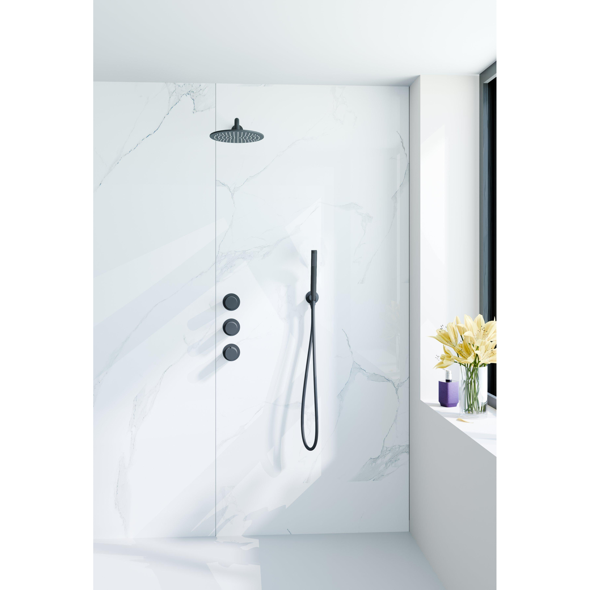 Fortifura Nebbio Ensemble de douche pluie - robinet encastré - corps encastré - coude mural de raccordement - flexible de douche métal - douchette à main - bras mural 35cm - douchette ronde - noir mat