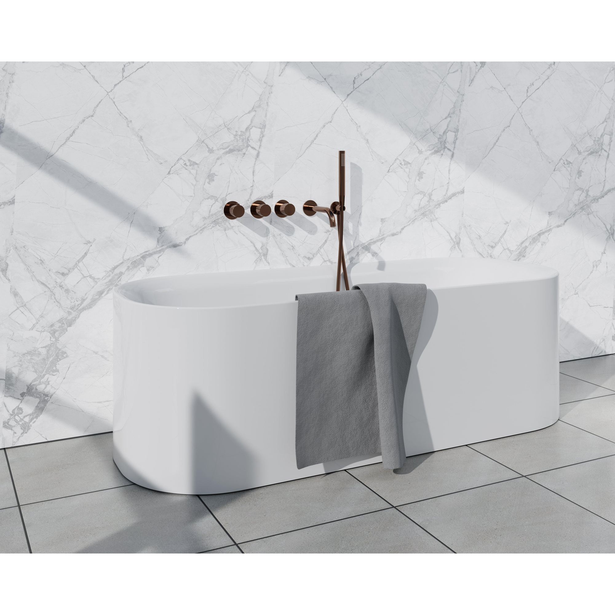 Fortifura Nebbio Ensemble combiné baignoire - mitigeur thermostatique - coude mural avec support de douchette - flexible de douche métallique - douchette à main barre - bec verseur - cuivre brossé PVD (cuivre)