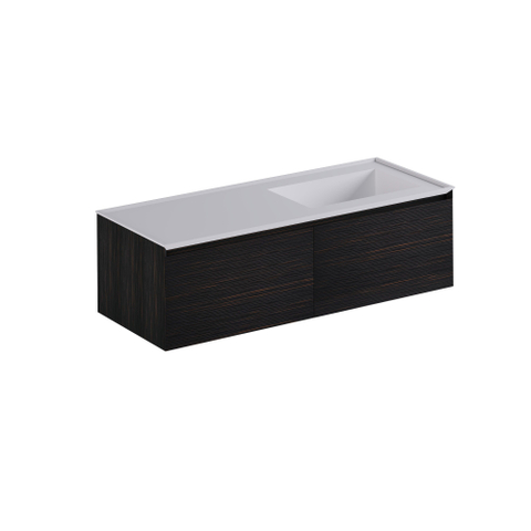 Innovant et élégant : ce magnifique meuble sous lavabo élève votre salle de bain à un niveau supérieur avec son design unique et ses matériaux de haute qualité. Avec un placage en biais à 45 degrés en Acrylique Italian Alpi Relief et un agencement de tiroirs en verre sans poignées, ce meuble sous lavabo dégage élégance et modernité. Le lavabo de CORIAN blanc pur avec un seul bac à droite pour un robinet mural ajoute une touche de luxe à votre intérieur de salle de bain. Les détails en Acrylique Italian Alpi font de ce meuble un véritable point focal dans chaque salle de bain.