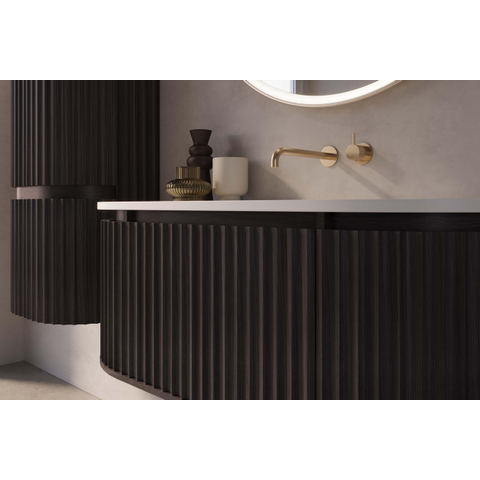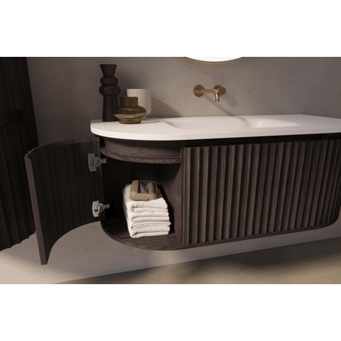 Découvrez le luxe ultime dans votre salle de bain avec ce magnifique meuble sous lavabo en placage Chocolate Ribbd. La combinaison de 1 tiroir et 2 portes offre suffisamment d'espace de rangement, tandis que la finition sans poignée ajoute une touche moderne et épurée à l'espace. Le lavabo de CORIAN blanc pur avec une cuve unique pour un robinet mural dégage de l'élégance et constitue le point central de votre salle de bain.