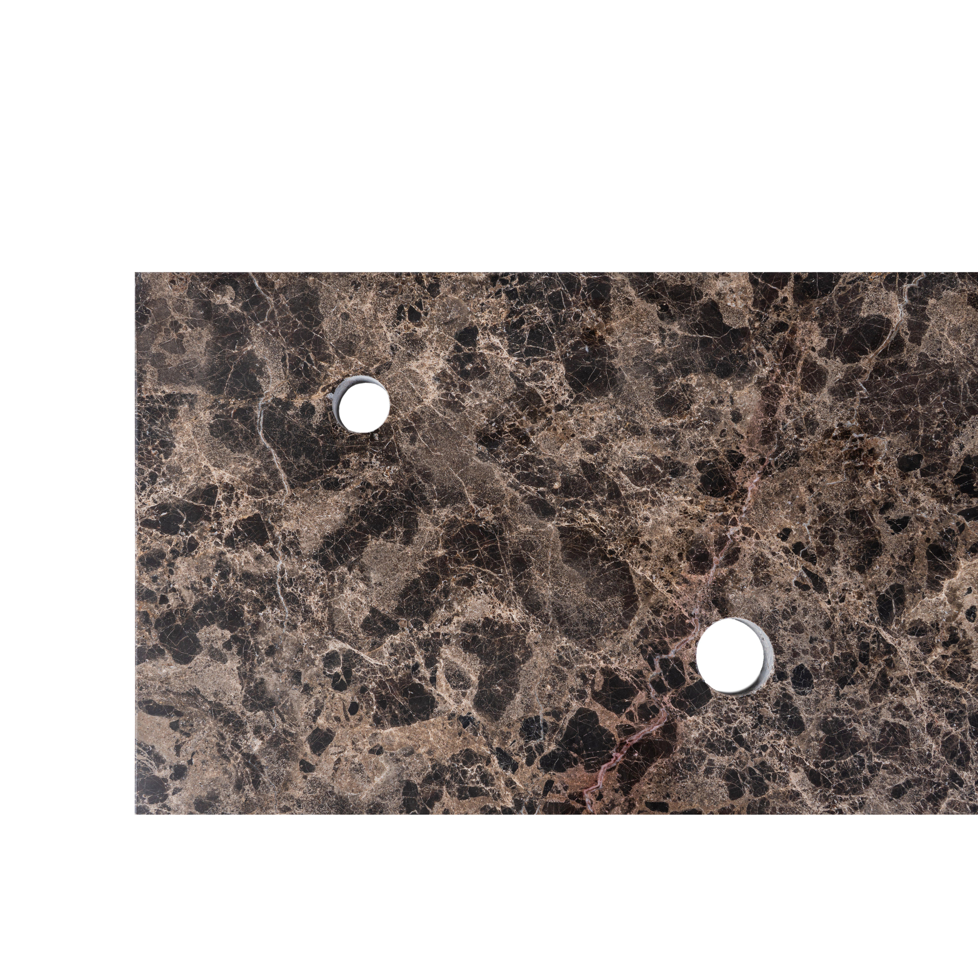 Vous recherchez un élément de salle de bains luxueux et naturel pour votre meuble de salle de bains, mais vous voulez aussi quelque chose de pratique à utiliser au quotidien ? Ce plan de toilette en pierre naturelle est idéal pour ceux qui souhaitent créer une salle de bains d’inspiration hôtel chic et chaleureuse, sans faire de compromis sur la fonctionnalité. Grâce à son format généreux, il est extrêmement adapté à une configuration double avec deux vasques à poser, parfait pour une famille nombreuse ou une salle de bains que vous aimez utiliser à deux. La teinte chaleureuse Dark Emperador se marie parfaitement avec les tons bois, les accents noirs et les robinets modernes, ce qui vous permet de créer un ensemble élégant aussi bien dans une salle de bains moderne que classique. Grâce aux trous de robinet pré-percés et aux découpes pour siphons déjà prévues, vous pouvez monter le plan de toilette efficacement et profiter d’une organisation soignée et réfléchie de votre meuble.