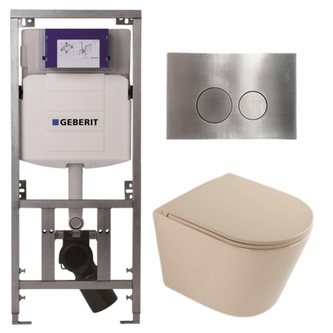 QeramiQ Dely Pack WC - 36.3x51.7cm - à fond creux - sans bride - réservoir WC attenant Geberit UP320 - abattant WC à fermeture douce - plaque de commande en acier - boutons ronds - mat beige