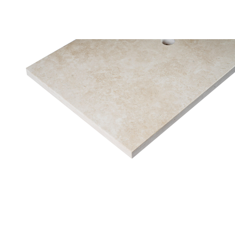 Saniclass Travertine Plateau - 80x46cm - sans trous de robinetterie - 1 découpe pour siphon - pierre naturelle marbrée