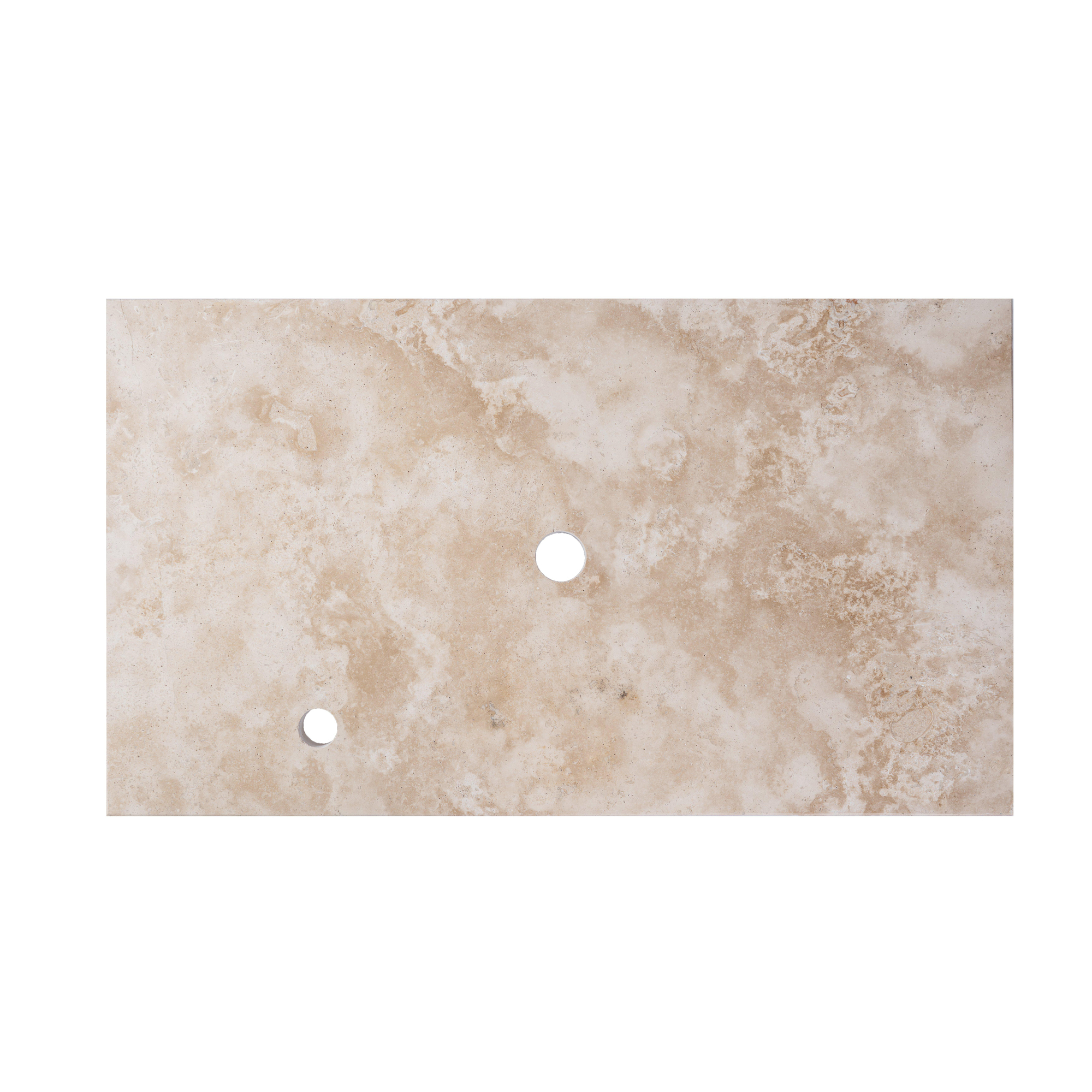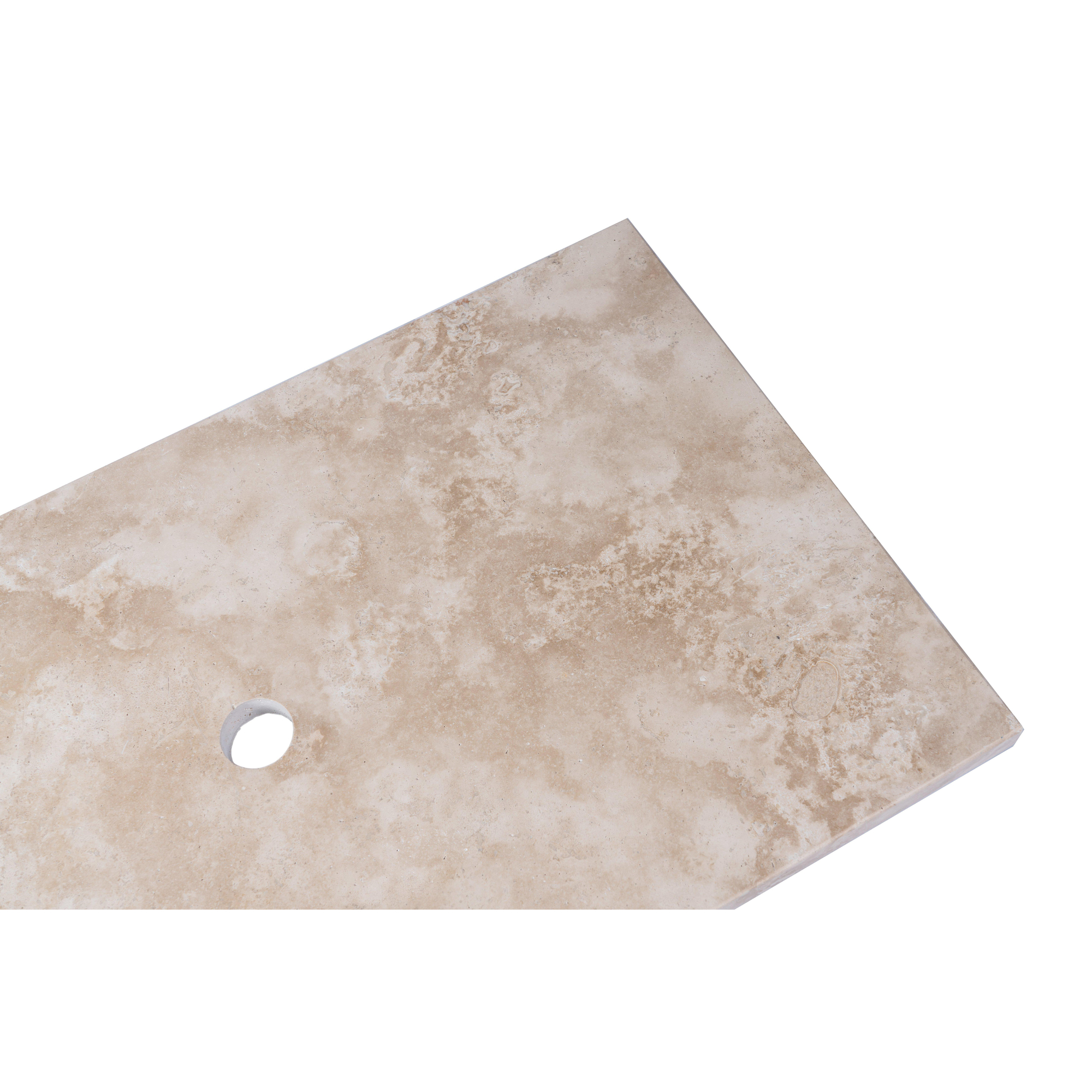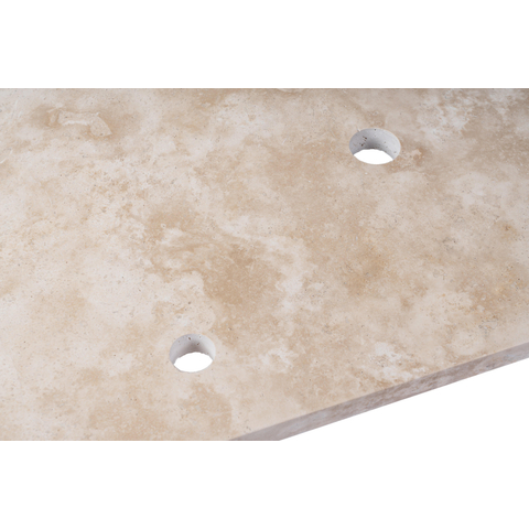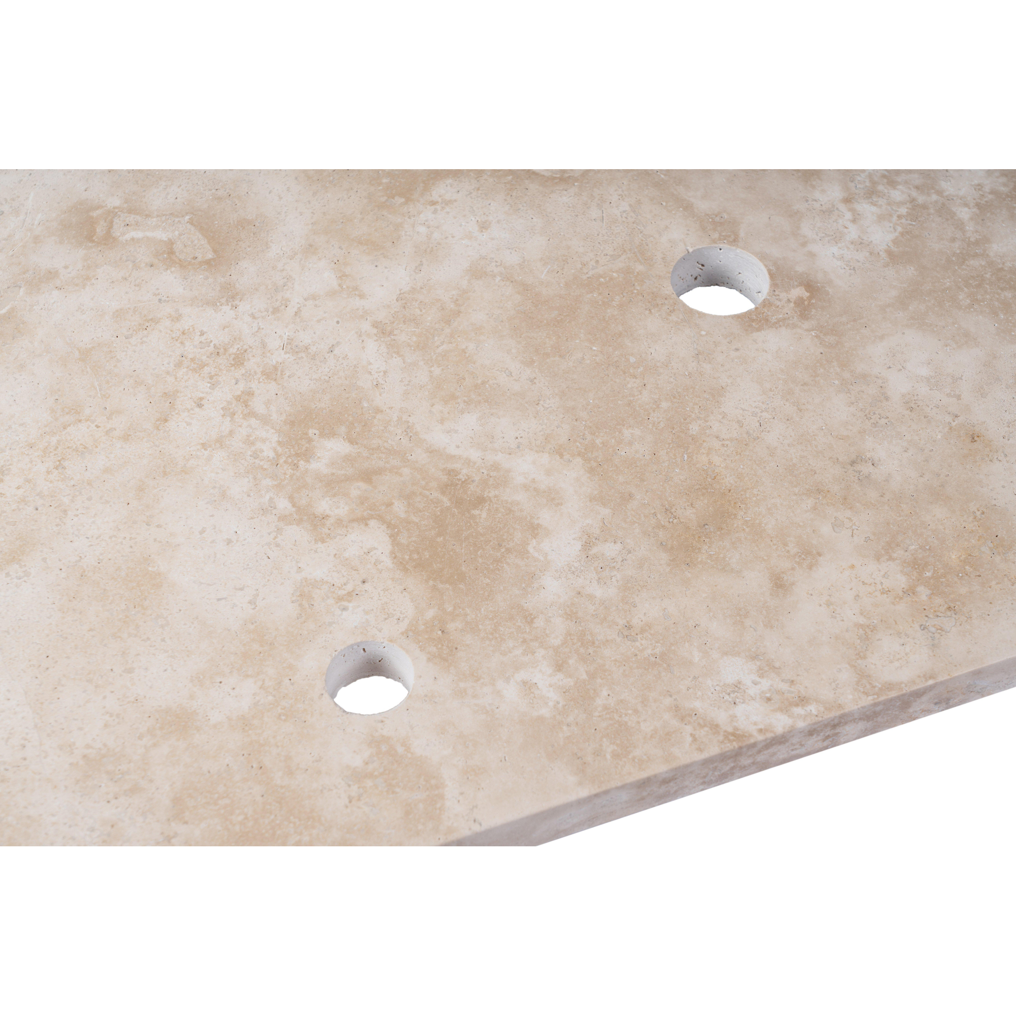 Saniclass Travertine Plan vasque - 80x46cm - 1 trou de robinet - 1 découpe de siphon - pierre naturelle mouchetée