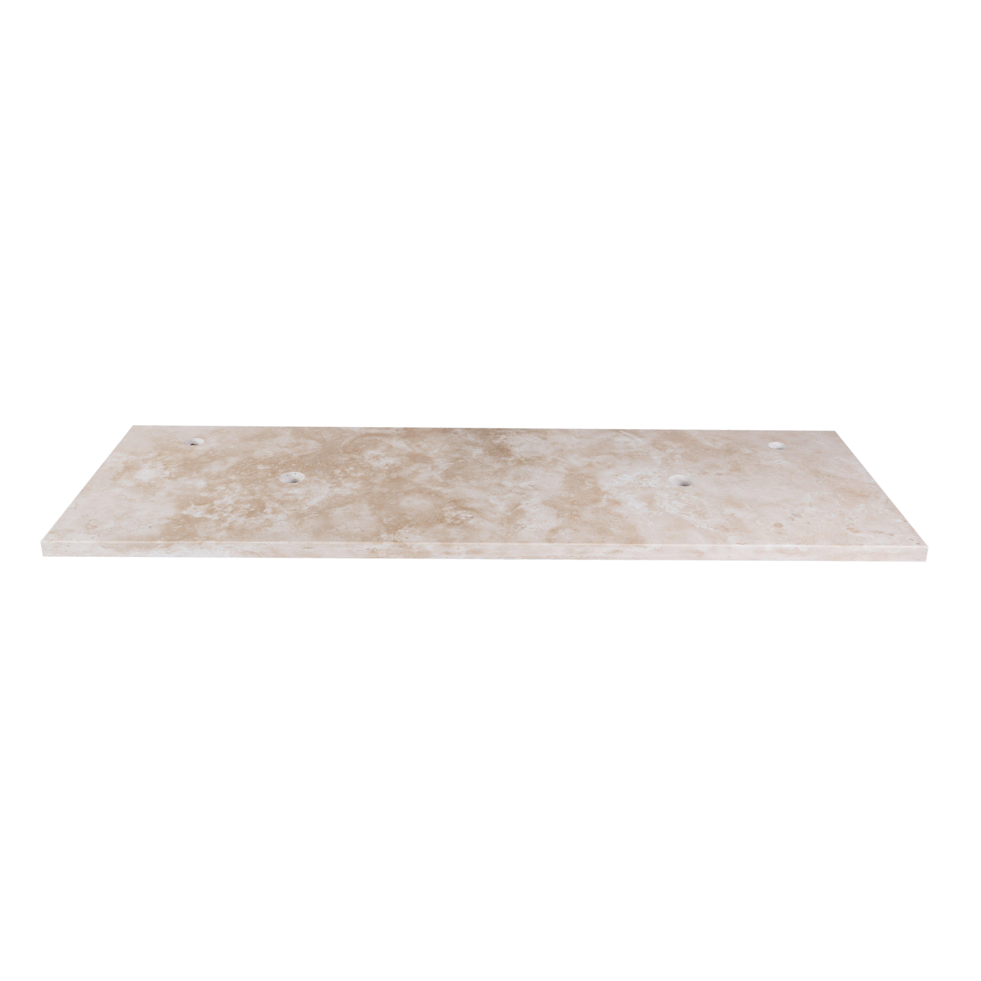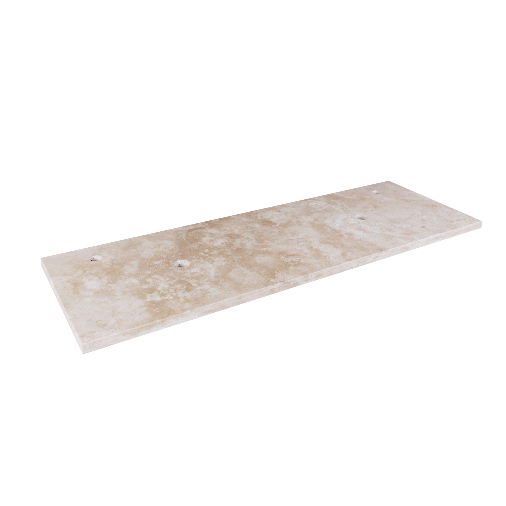 Saniclass Travertine plan sous vasque - 140x46cm - 2 trous de robinet - 2 découpes pour siphon - pierre naturelle marbrée
