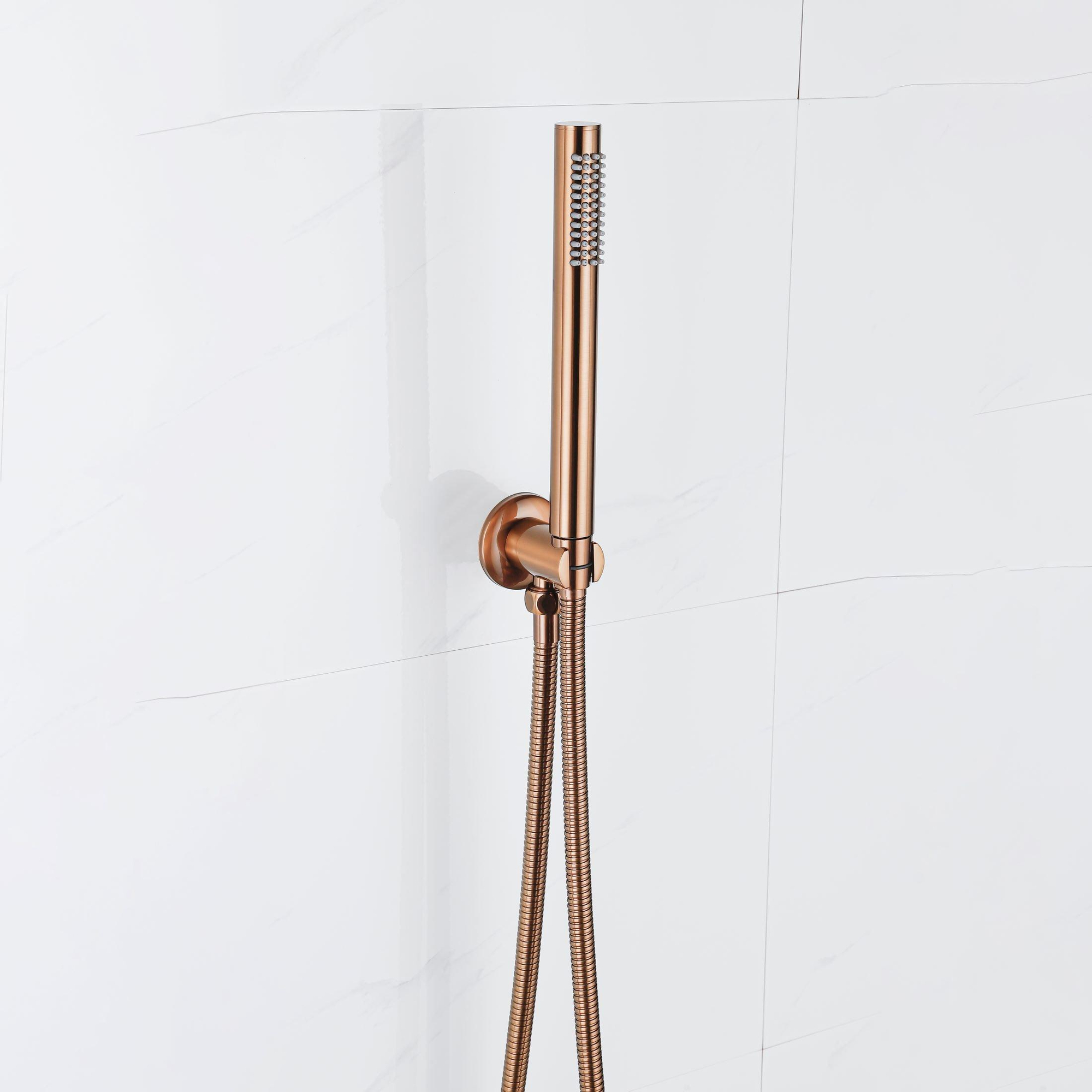 Fortifura Calvi Robinet de baignoire set - bec - 22cm réductible - flexible en métal - douchette à main - partie encastrable - support mural - cuivre brossé PVD