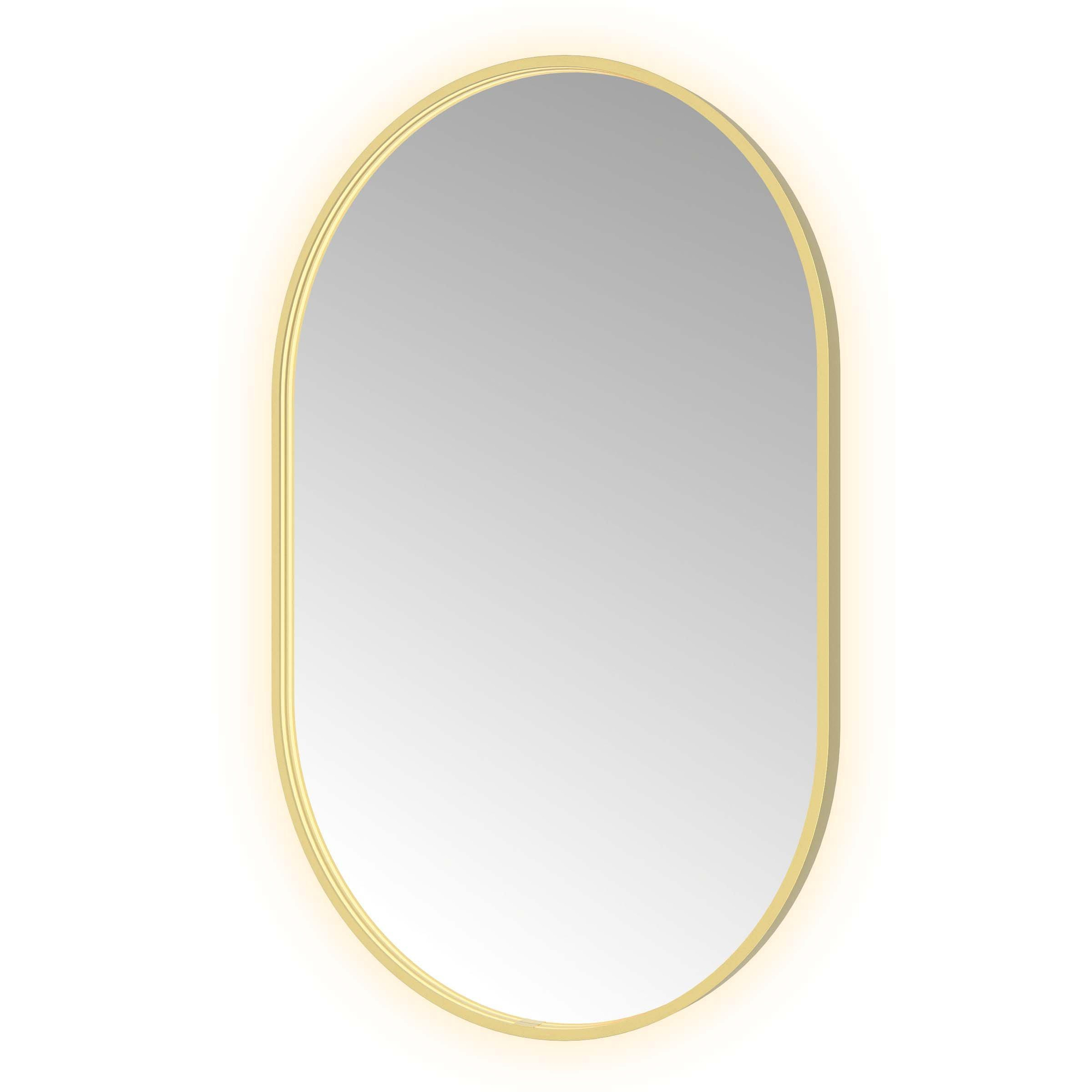 Hotbath &MORE Miroir Ovale LED direct et indirect chauffage de miroir dimmable avec télécommande Laiton brossé PVD