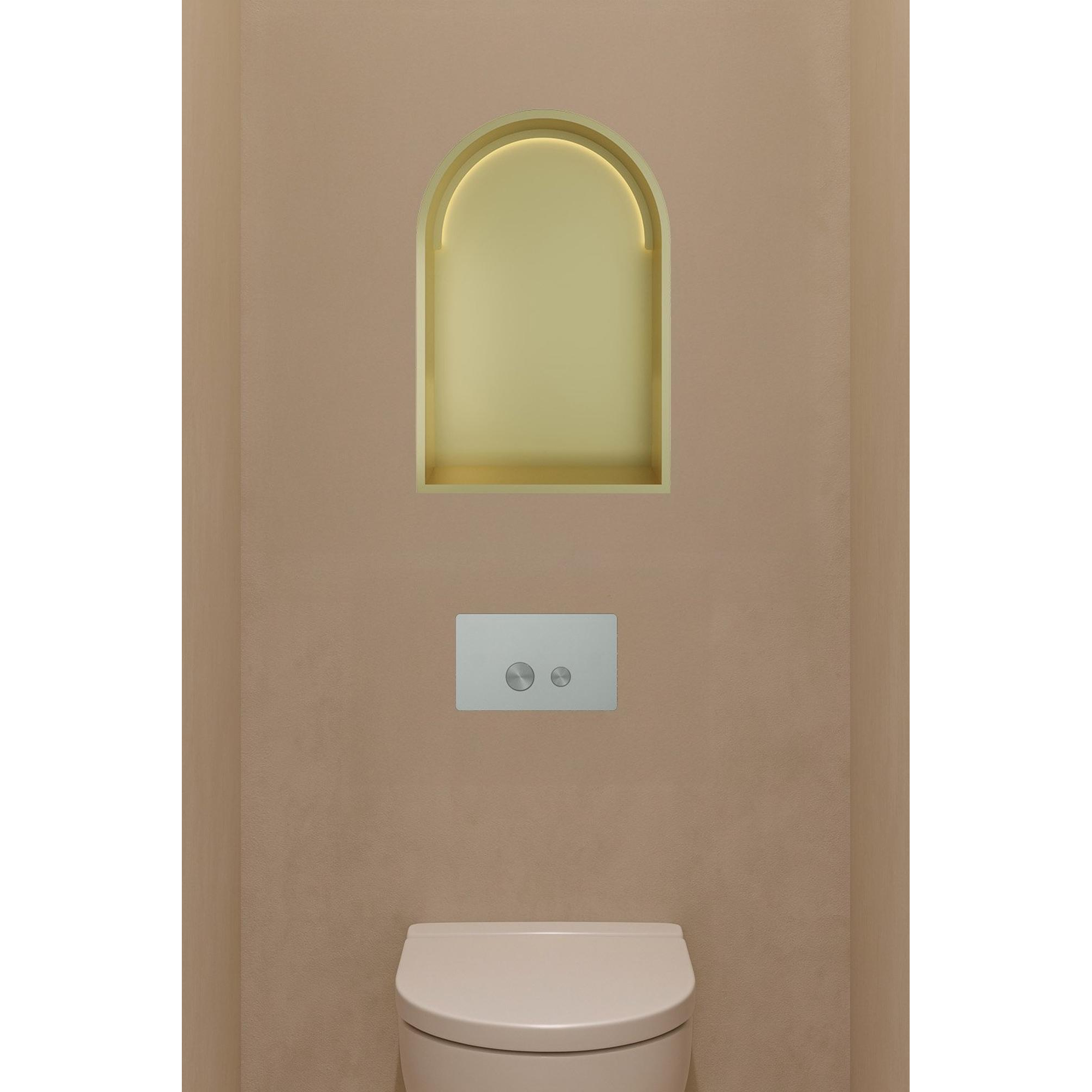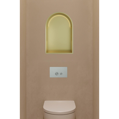 Avec cette élégante boîte d'encastrement, vous transformez votre salle de bains en un rien de temps en une oasis de calme et d'élégance. La forme subtilement incurvée ajoute un détail ludique mais néanmoins raffiné à votre mur, tandis que la chaude couleur laiton brossé apporte une apparence luxueuse qui élève immédiatement votre salle de bains à un niveau supérieur. Grâce à l'éclairage LED intégré, vous profitez non seulement d'une ambiance chaleureuse, mais aussi d'un éclairage pratique qui rend votre salle de bains fonctionnelle et accueillante. Cette niche d'encastrement est conçue pour disparaître parfaitement dans votre mur, ce qui crée un espace de rangement supplémentaire sans que cela se fasse au détriment de l'espace ou du design. Vous combinez ainsi sans effort beauté et facilité d'utilisation, pour une salle de bains à la fois élégante et pratique.