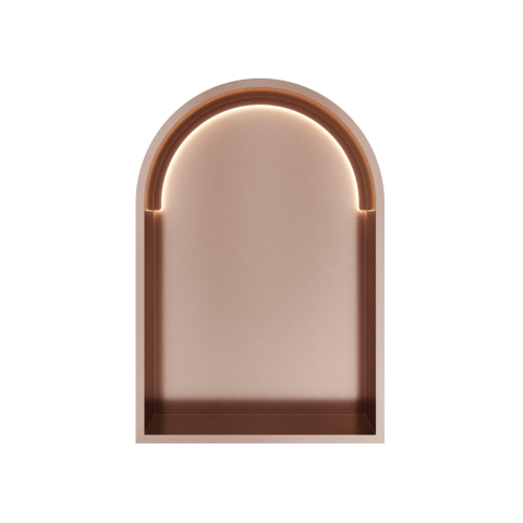 Hotbath &MORE Boîte d'encastrement ou niche d'encastrement Modèle en arcade - 30x45x10cm - avec LED - IP44 - Cuivre brossé PVD