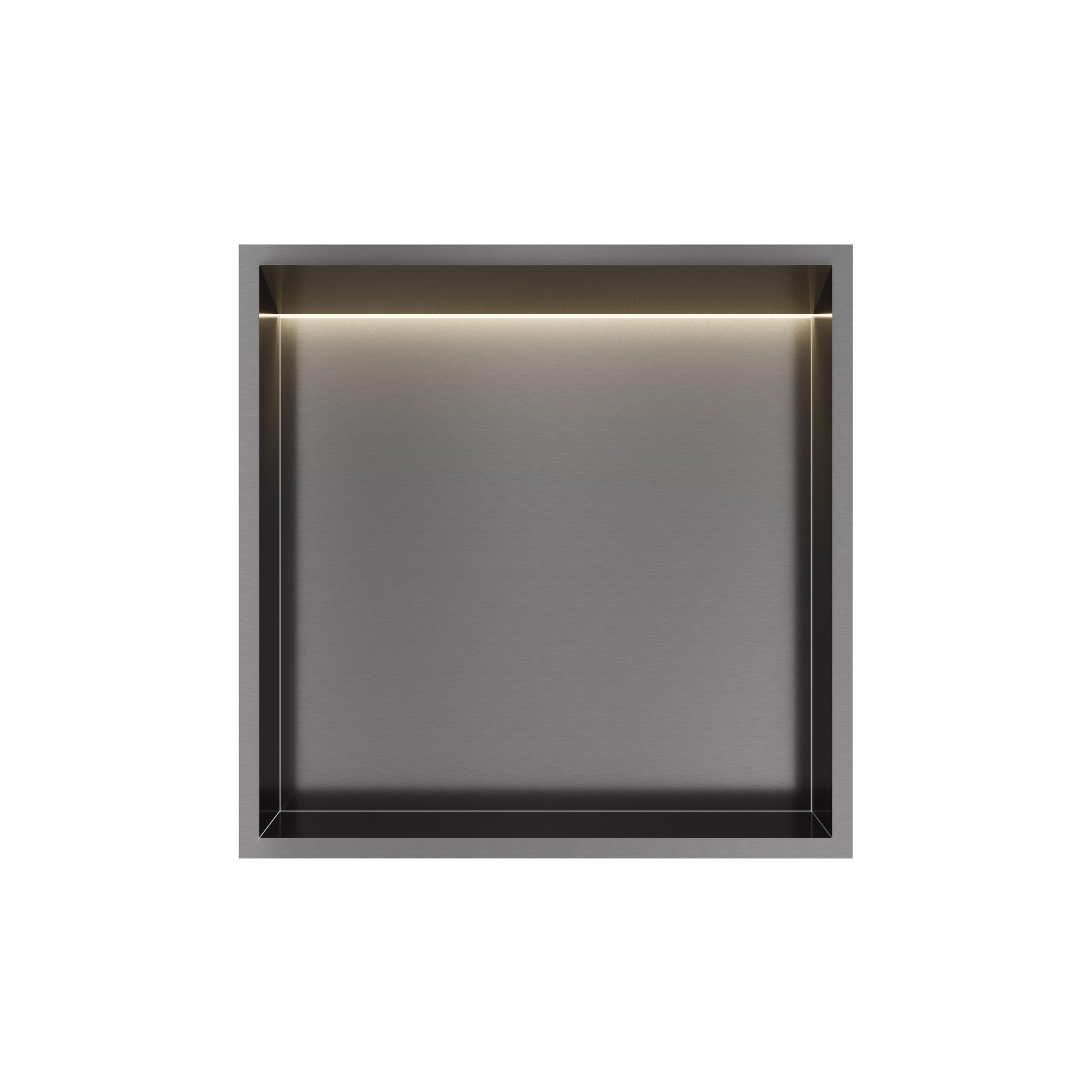 Hotbath &MORE Boîte encastrée ou niche encastrée 30x30x10cm avec LED IP44 Gunmetal brossé PVD