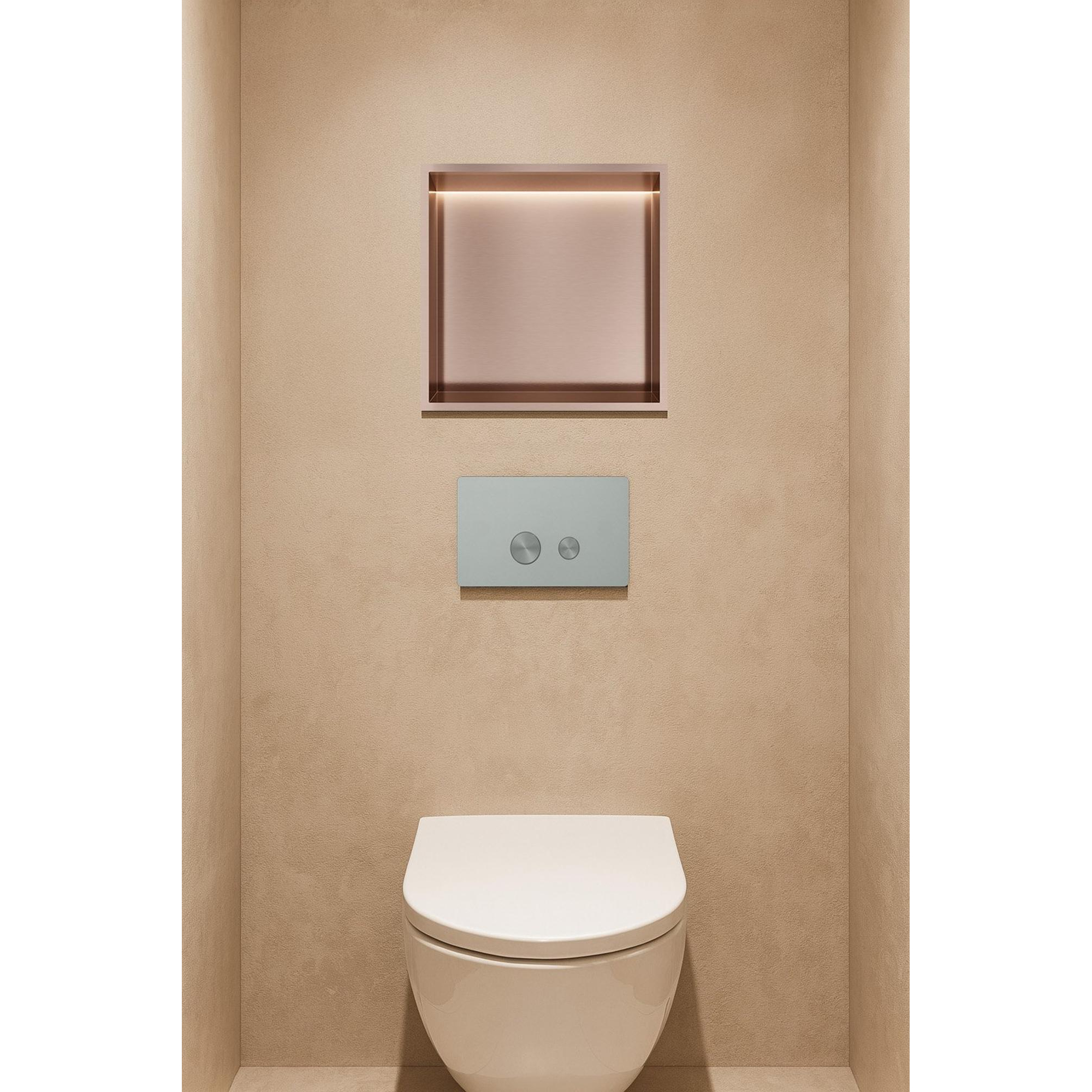 Avec cette niche encastrée, vous donnez à votre salle de bains une mise à niveau élégante et pratique. Le format subtil de 30x30x10 cm en fait une solution parfaite pour ranger les petits objets de manière ordonnée et visible, sans prendre de place. Grâce à l'éclairage LED intégré, un accent d'ambiance se crée qui donne à votre salle de bains une atmosphère chaleureuse et accueillante. La finition en cuivre brossé mat apporte une touche de luxe qui s'harmonise facilement avec différents styles d'intérieur. Ainsi, vous transformez votre salle de bains en un lieu où fonctionnalité et élégance vont de pair, et vous profitez chaque jour d'un espace organisé et chaleureux.