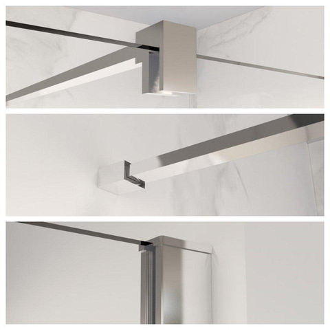 Verre de sécurité trempé de 8 mm avec profilé chromé et barre de stabilisation