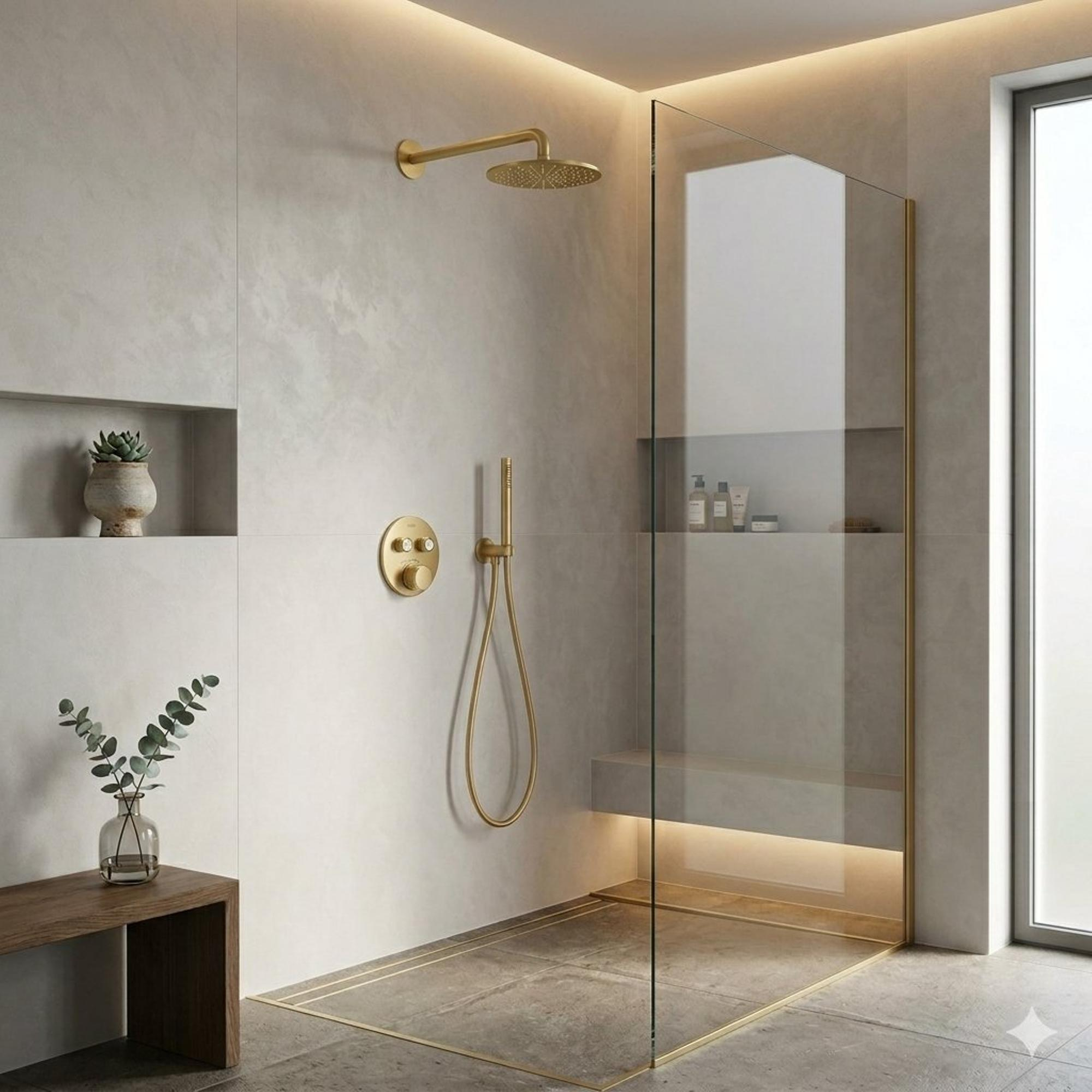 Entrez dans un monde de luxe et de confort avec ce magnifique ensemble de douche pluie qui transforme immédiatement votre salle de bains en un véritable oasis de bien-être. La combinaison d’une généreuse douchette principale Adema et d’une pratique douchette à main Adema vous offre toute la liberté d’adapter votre expérience de douche exactement selon vos souhaits. Grâce aux matériaux de haute qualité et au design réfléchi, vous profitez non seulement d’un aspect élégant, mais aussi d’un fonctionnement durable et fiable. La finition chaude dorée brossée ajoute une touche d’élégance, faisant de votre salle de bains un véritable point d’attraction. Avec la commande thermostatique intelligente, vous maintenez facilement la température d’eau parfaite, assurant ainsi sécurité et confort supplémentaires. Cet ensemble n’est pas simplement un élément fonctionnel, mais un ajout précieux qui crée chaque jour un moment de détente et de plaisir.