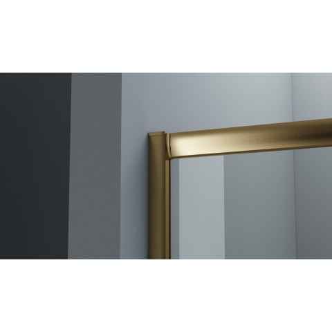 Cette cabine de douche se distingue immédiatement par son profil raffiné or mat et son design en quart de cercle. Le profil d'angle arrondi subtil offre une apparence douce et accueillante qui donne à votre salle de bains une touche exclusive. Le verre clair renforce cet effet en créant une atmosphère ouverte et lumineuse. Vous ajoutez ainsi une élégance intemporelle qui s'adapte aisément à divers styles de salle de bains. De plus, le design permet à la cabine de s'intégrer parfaitement dans l'angle, économisant de l'espace sans sacrifier le style.