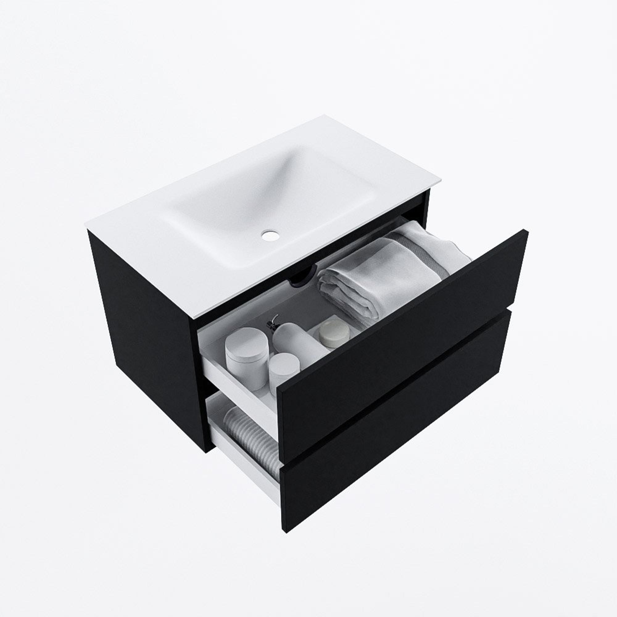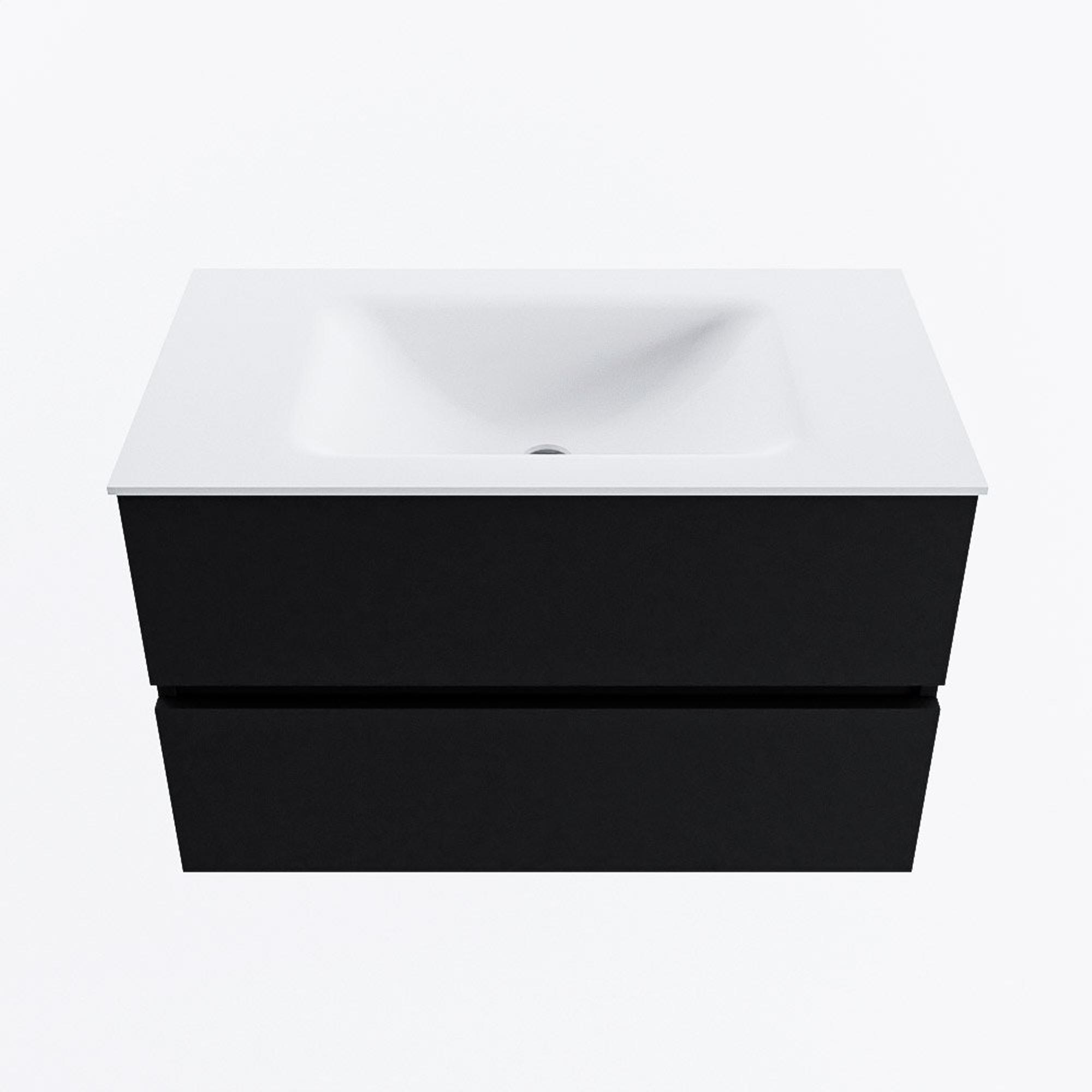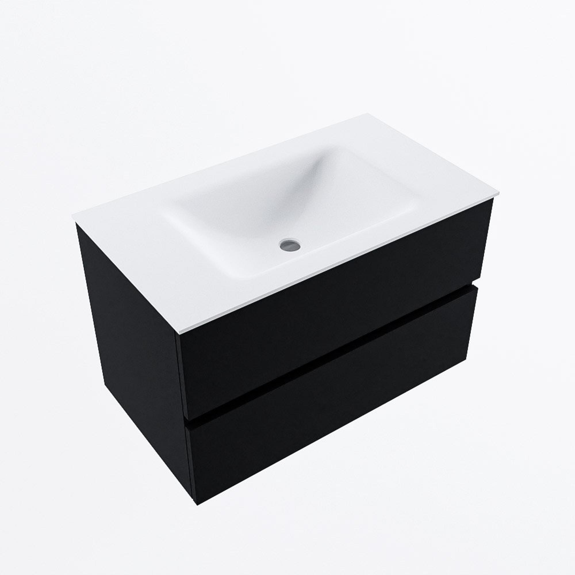 MONDIAZ VICA meuble sous lavabo 80cm Urban 2 tiroirs. Lavabo CLOUD central sans trou de robinet, couleur Talc.