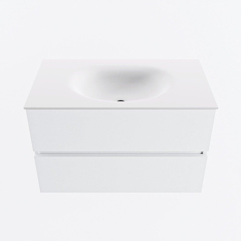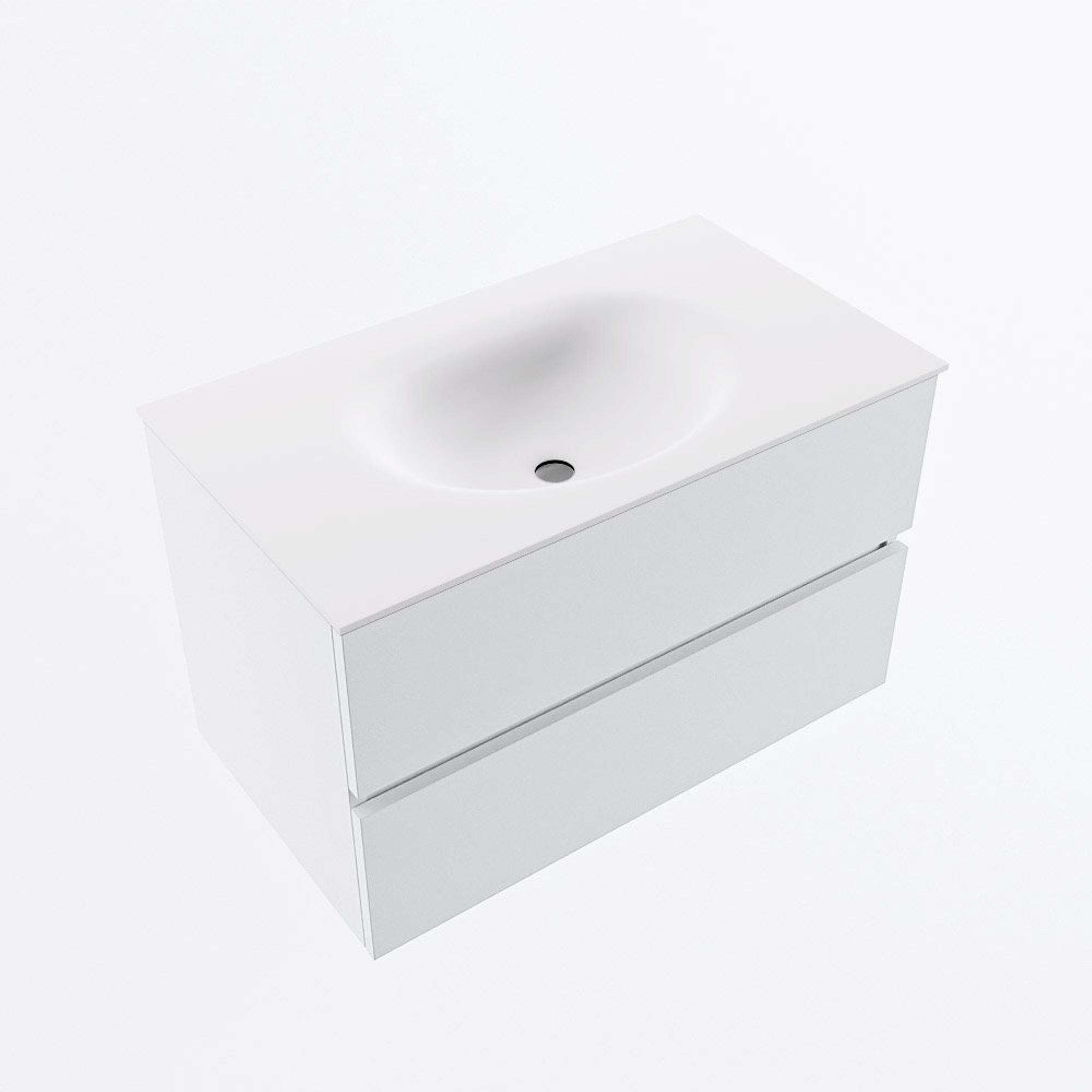 MONDIAZ VICA Meuble de salle de bains 80cm sous-meuble Talc 2 tiroirs. Lavabo MOON central 1 trou de robinet, couleur Talc.
