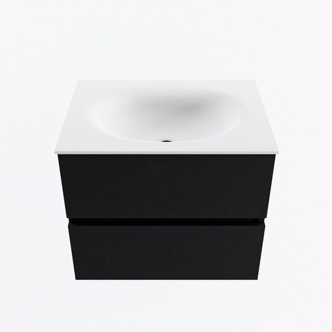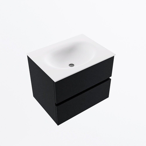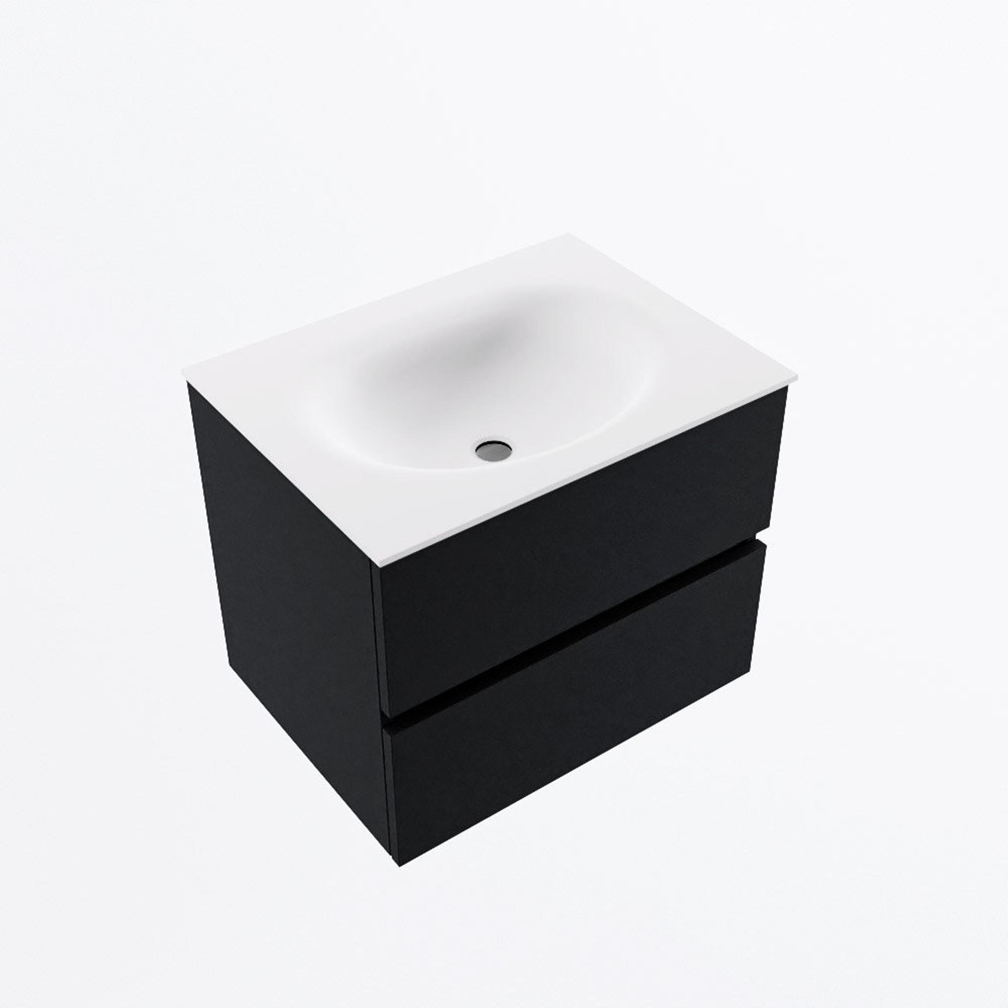 MONDIAZ VICA meuble sous lavabo 60cm Urban 2 tiroirs. Lavabo MOON central sans trou de robinet, couleur Talc.