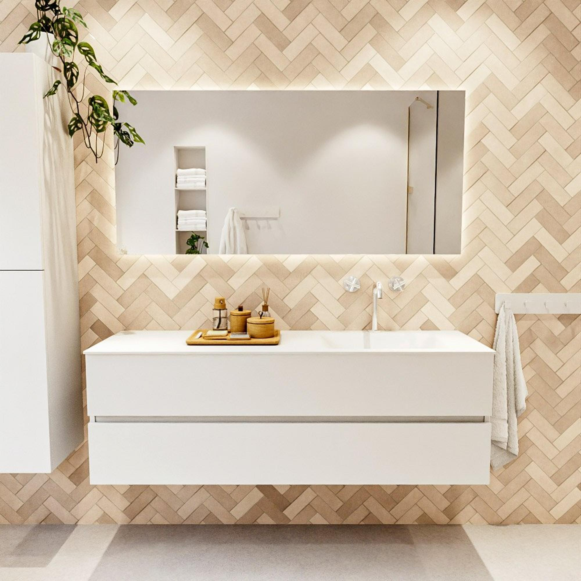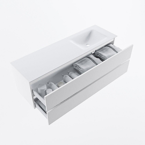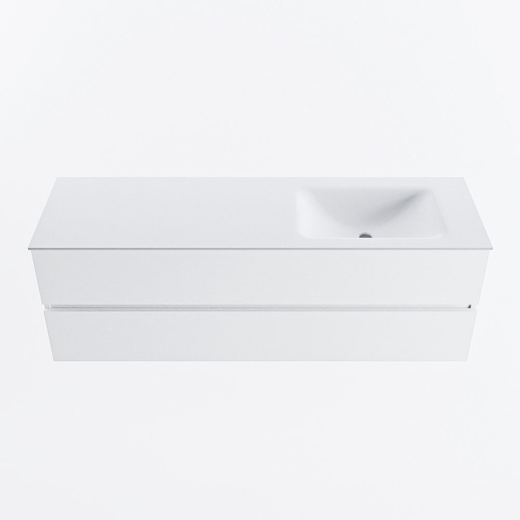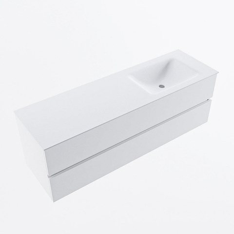 MONDIAZ VICA meuble sous lavabo 150cm Talc 2 tiroirs. Lavabo CLOUD droite 1 trou de robinet, couleur Talc.