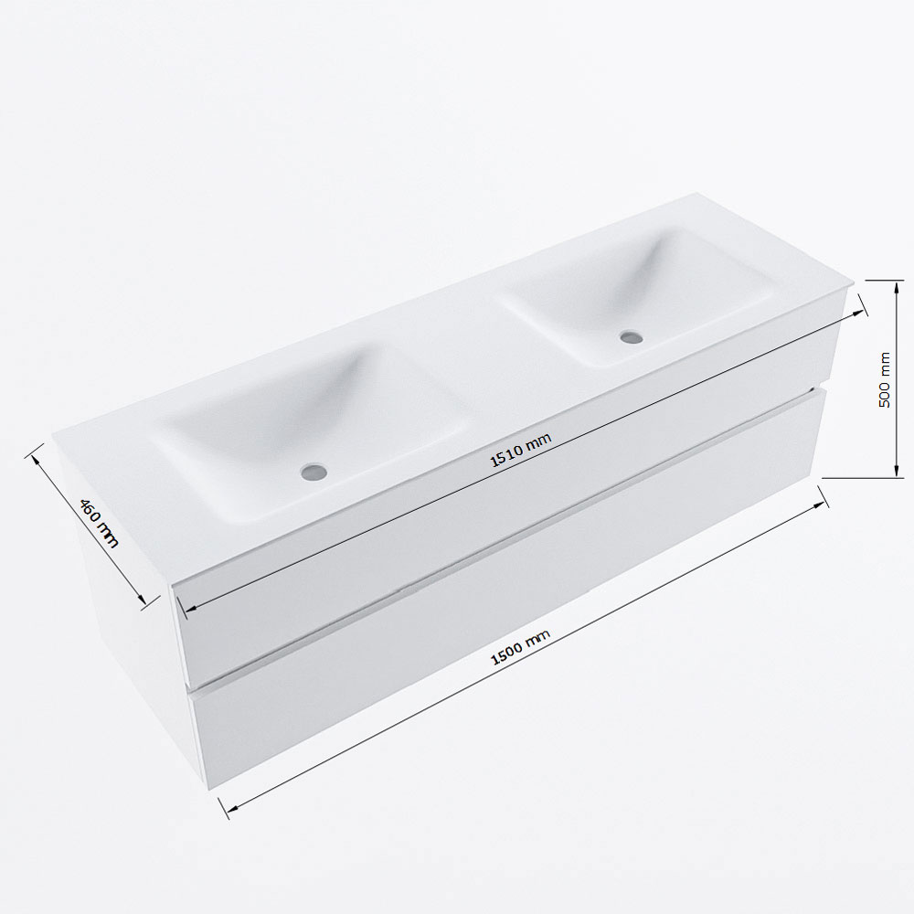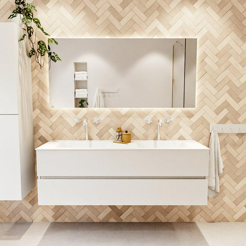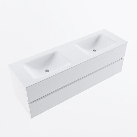 MONDIAZ VICA meuble sous lavabo 150cm Talc 2 tiroirs. Lavabo CLOUD double 2 trous de robinet, couleur Talc.