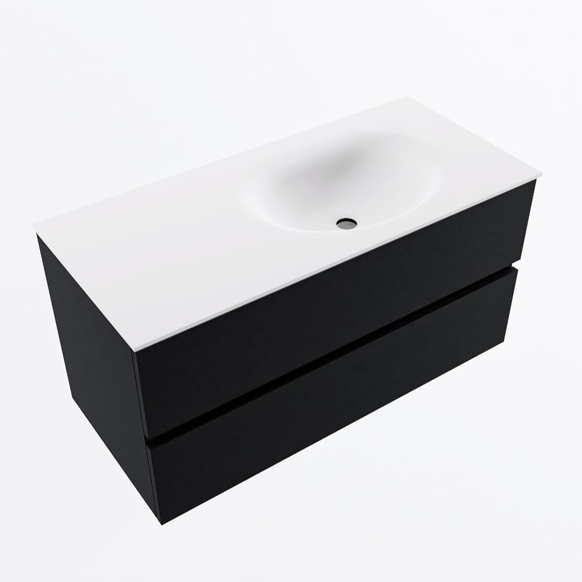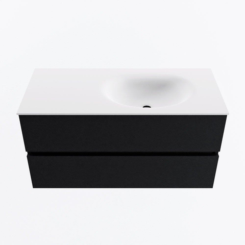 MONDIAZ VICA 100cm meuble sous lavabo Urban 2 tiroirs. Lavabo MOON à droite sans trou de robinet, couleur Talc.