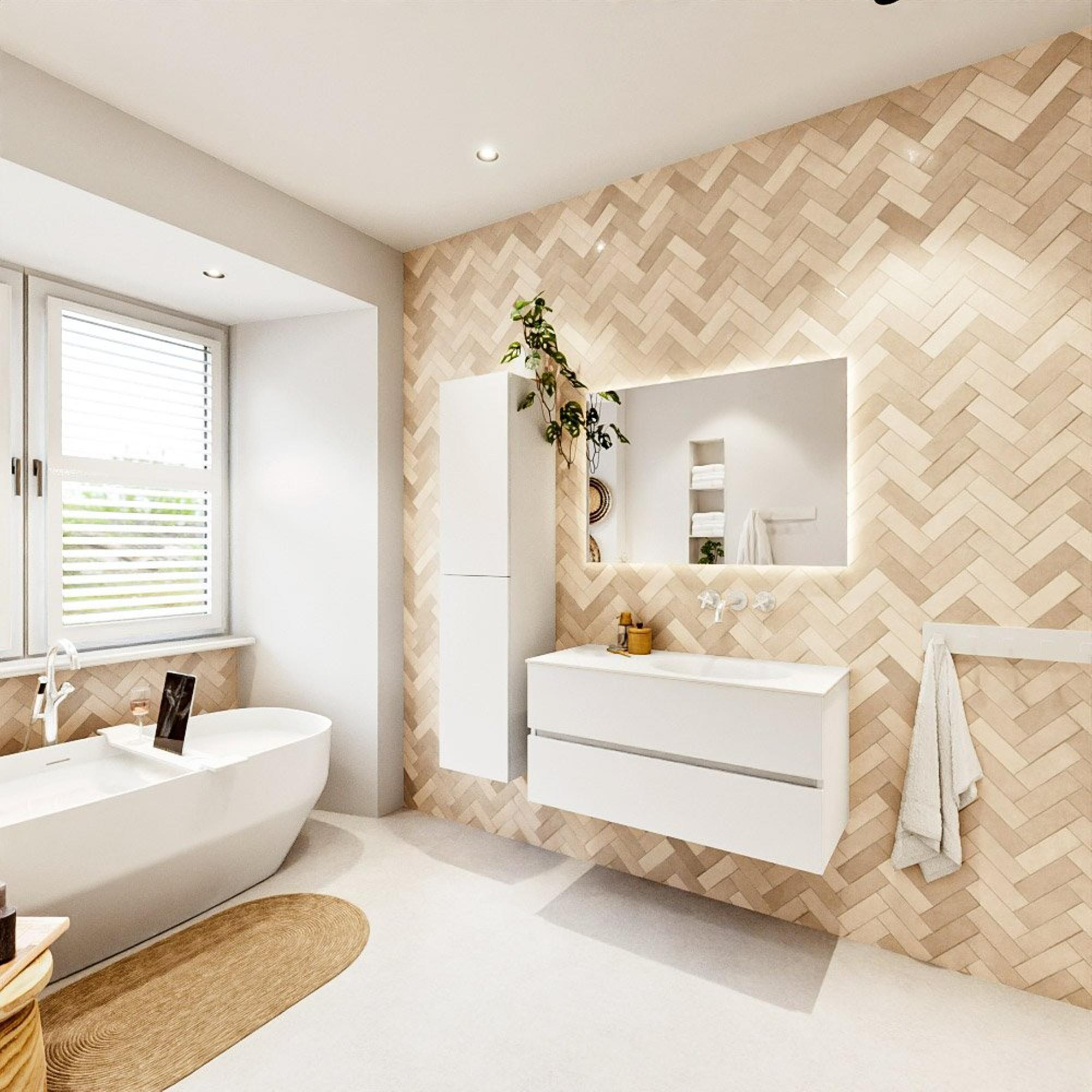 Ce meuble de salle de bain n'est pas seulement fonctionnel, mais aussi particulièrement stylé. Les lignes épurées et le design minimaliste offrent une apparence contemporaine qui s'harmonise parfaitement avec une décoration moderne. La couleur Talc ajoute une touche de douceur à l'espace, tandis que les tiroirs et le lavabo offrent un équilibre parfait entre forme et fonction.