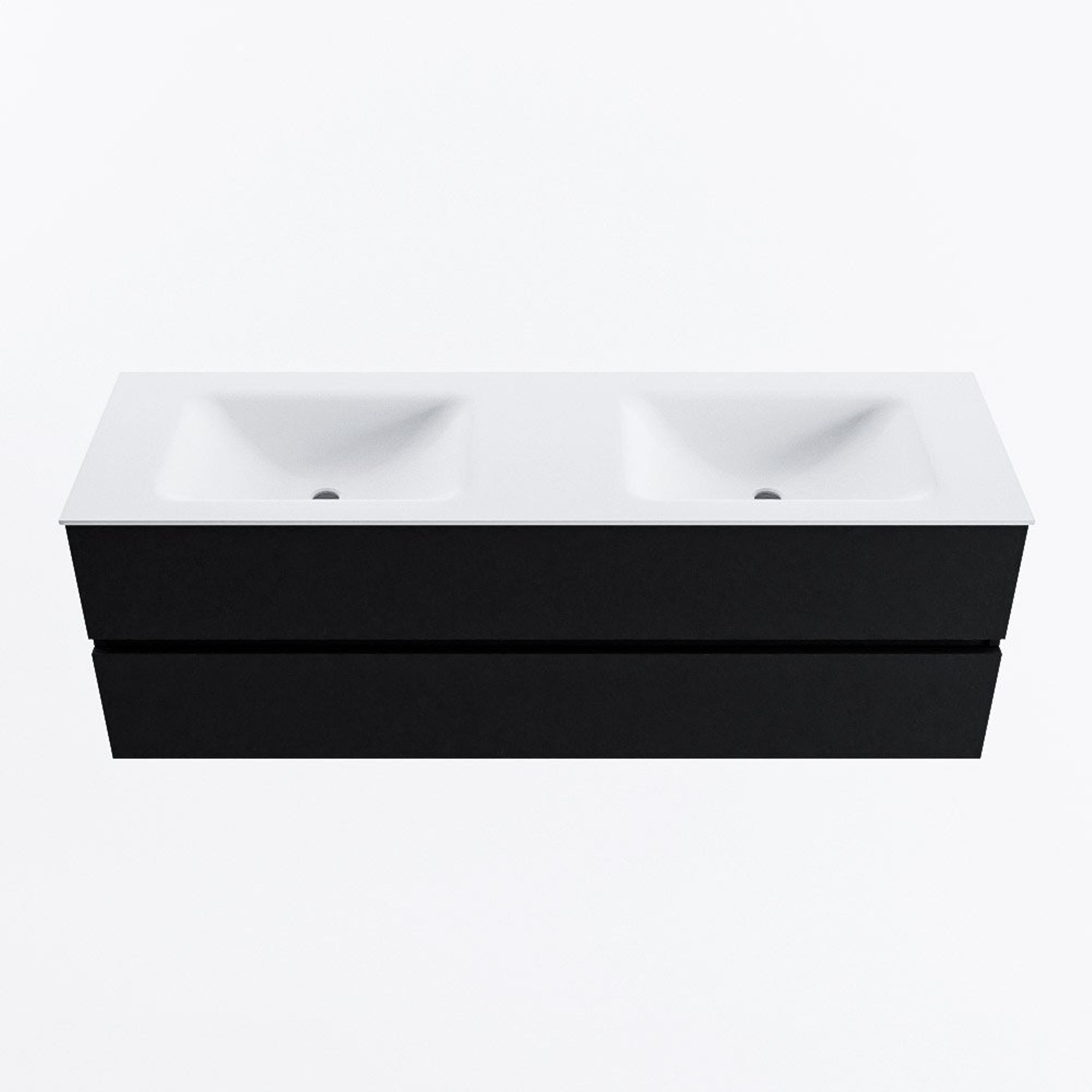 MONDIAZ VICA meuble sous lavabo 150cm Urban 2 tiroirs. Lavabo CLOUD double 2 trous de robinet, couleur Talc.