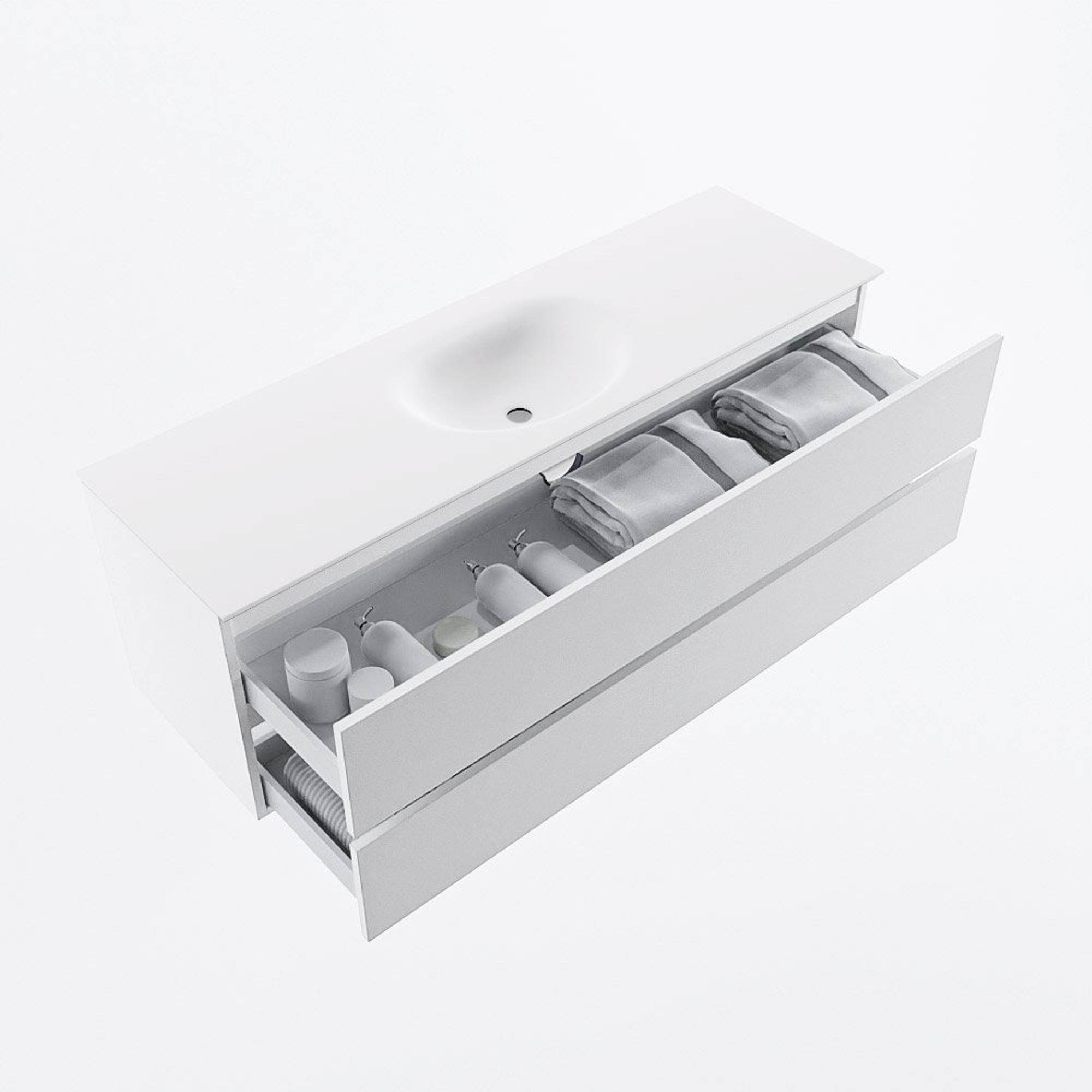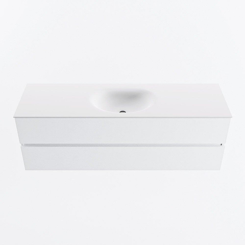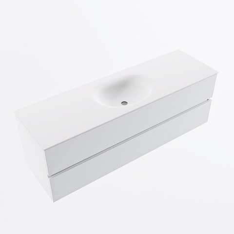 MONDIAZ VICA meuble sous lavabo 150cm Talc 2 tiroirs. Lavabo MOON centre 1 trou de robinet, couleur Talc.