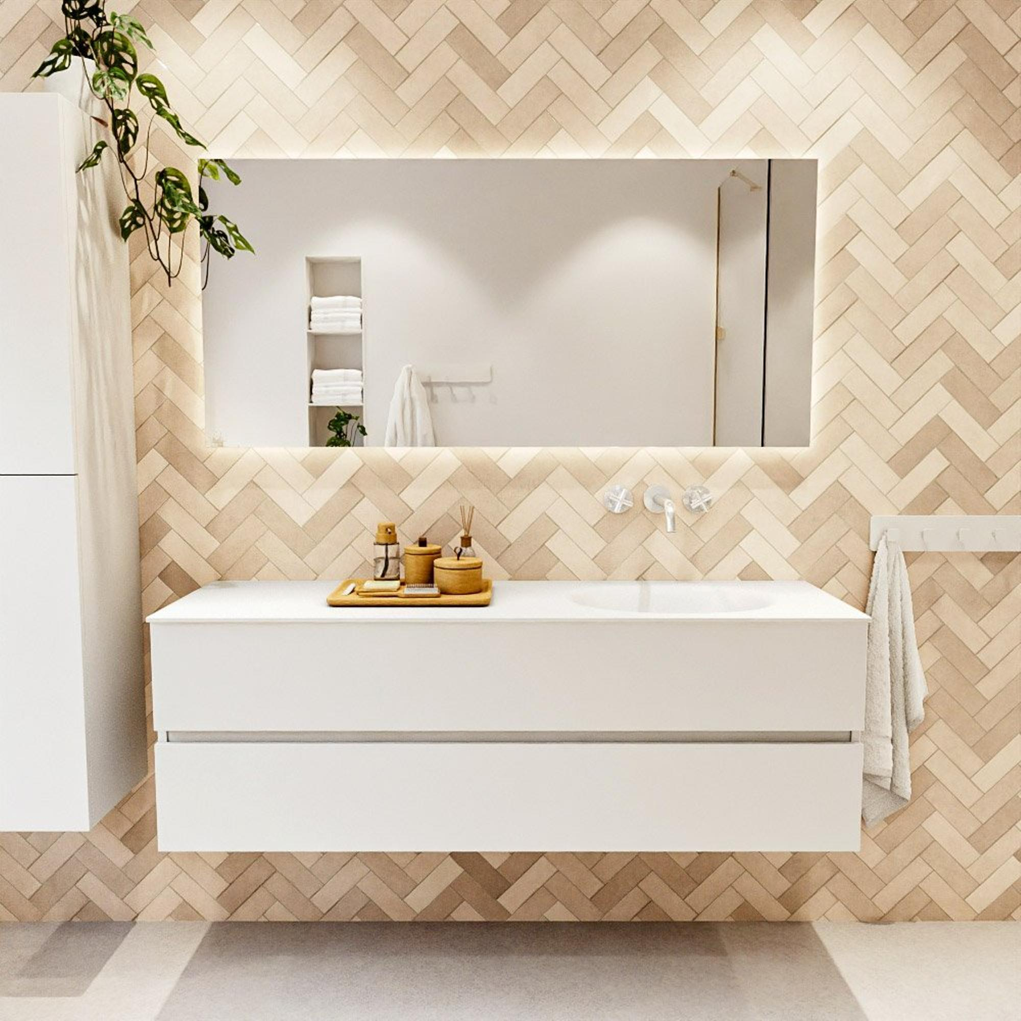 Ce magnifique meuble de salle de bain avec 2 tiroirs et lavabo sans trou de robinet dégage élégance et fonctionnalité. Avec une longueur de 150cm et la couleur Talc, ce meuble ajoute une touche de style à chaque salle de bain. Le meuble sous lavabo MONDIAZ VICA est parfait pour ceux qui recherchent une combinaison de design moderne et d'espace de rangement pratique. Avec ses lignes épurées et sa finition de haute qualité, ce meuble de salle de bain est un véritable point focal dans chaque salle de bain.