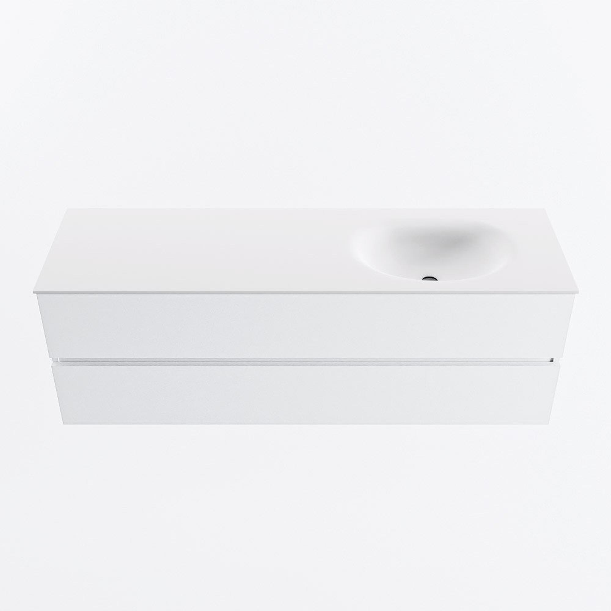 MONDIAZ VICA meuble sous lavabo 150cm Talc 2 tiroirs. Lavabo MOON à droite sans trou de robinet, couleur Talc.