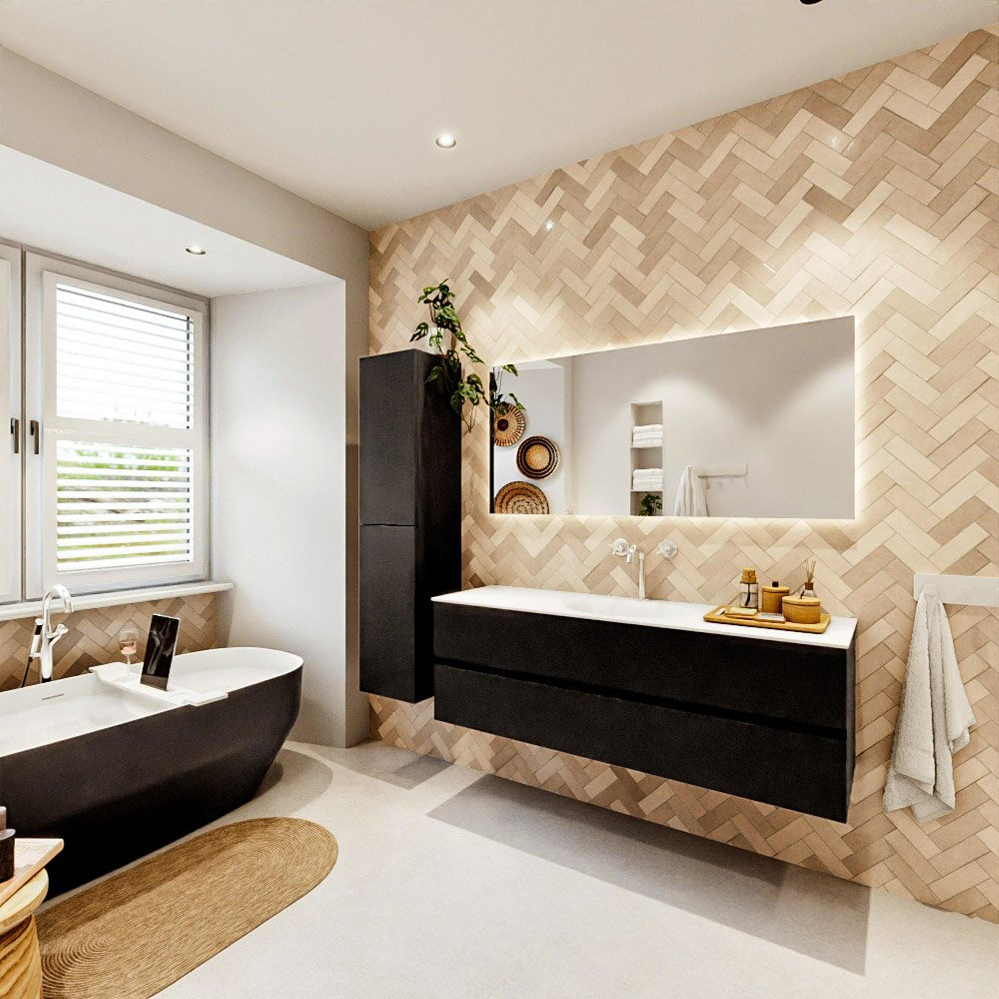 Le look urbain du sous-meuble s’accorde parfaitement avec les styles de salle de bains contemporains, du moderne à l’industriel. La couleur Talc est une teinte subtile et douce qui se combine facilement avec des carreaux clairs ou foncés, des accents noirs ou au contraire des robinets couleur chrome. Le design minimaliste sans poignées met l’accent sur la forme et les matériaux, ce qui rend l’ensemble intemporel. En choisissant ce meuble, vous créez une base calme que vous pouvez personnaliser entièrement à votre goût avec des accessoires et un éclairage, sans avoir à craindre que le design ne se démode rapidement.