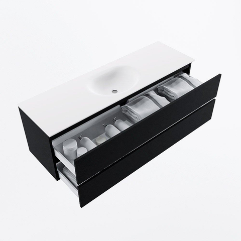 Avec cette combinaison de tiroirs de rangement spacieux, d’un sous-meuble suspendu épuré et d’une vasque pratique en Solid Surface, vous créez en une seule fois un espace de lavage fonctionnel et élégant. Choisissez ce meuble comme base solide pour la conception de votre salle de bains et complétez votre salle de bains de rêve avec ce produit élégant et découvrez vous-même la qualité.