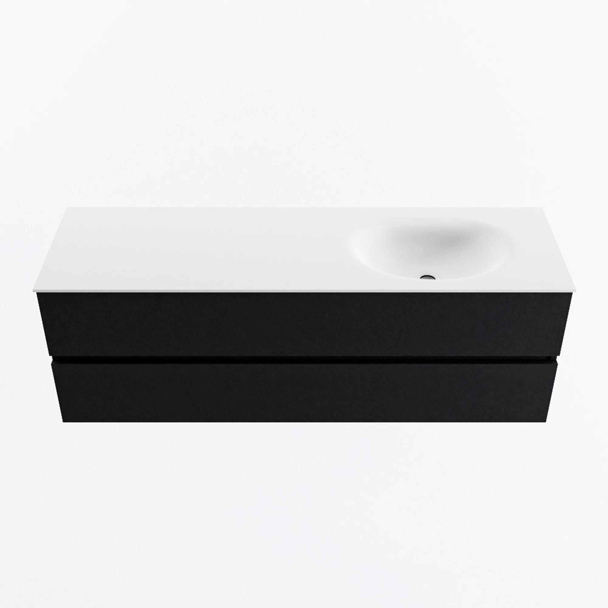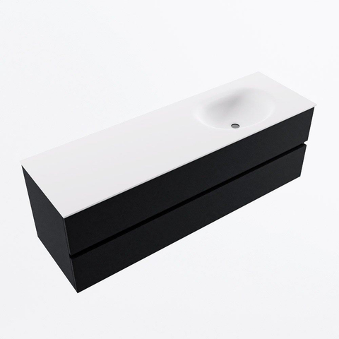 MONDIAZ VICA meuble sous lavabo 150cm Urban 2 tiroirs. Lavabo MOON droite 1 trou de robinet, couleur Talc.