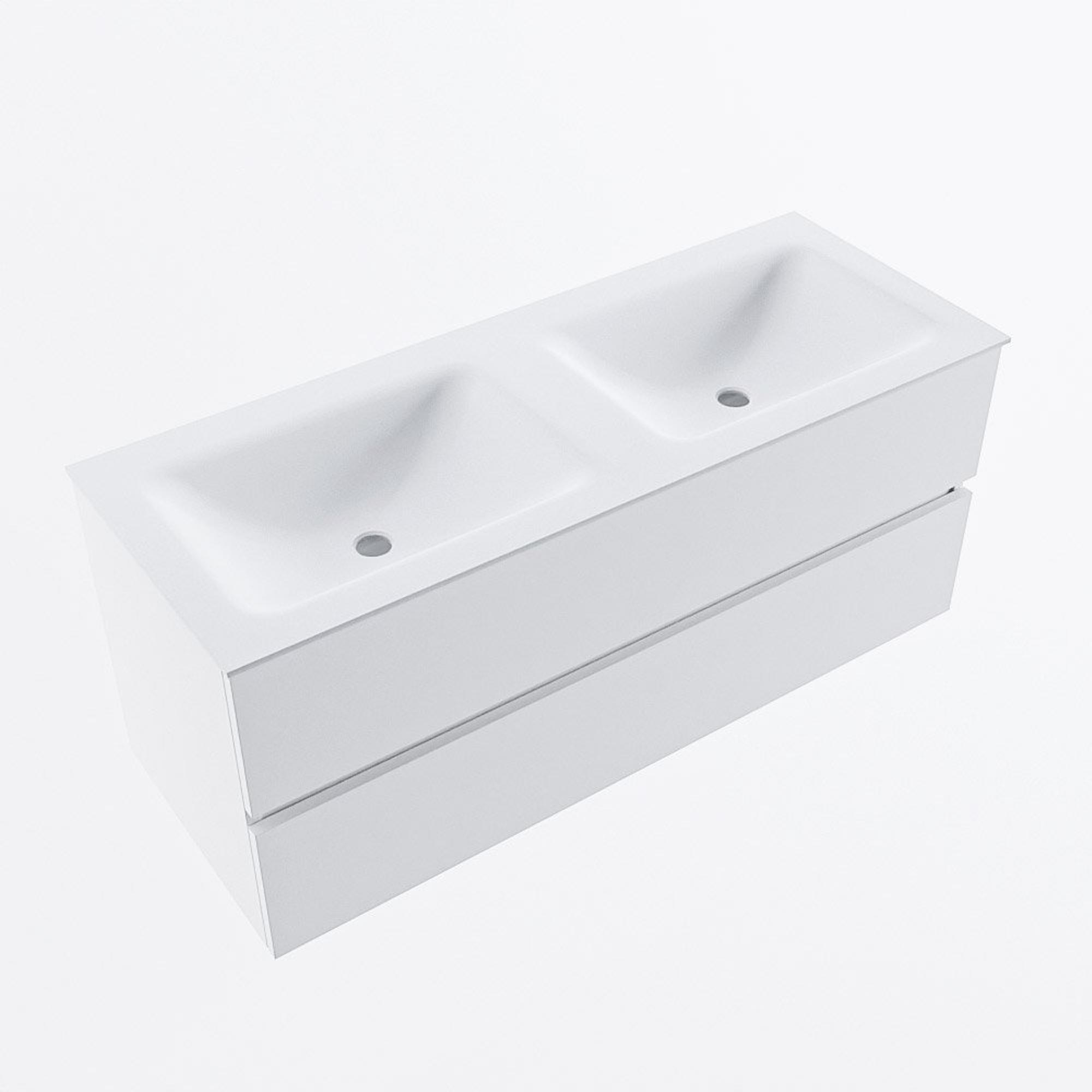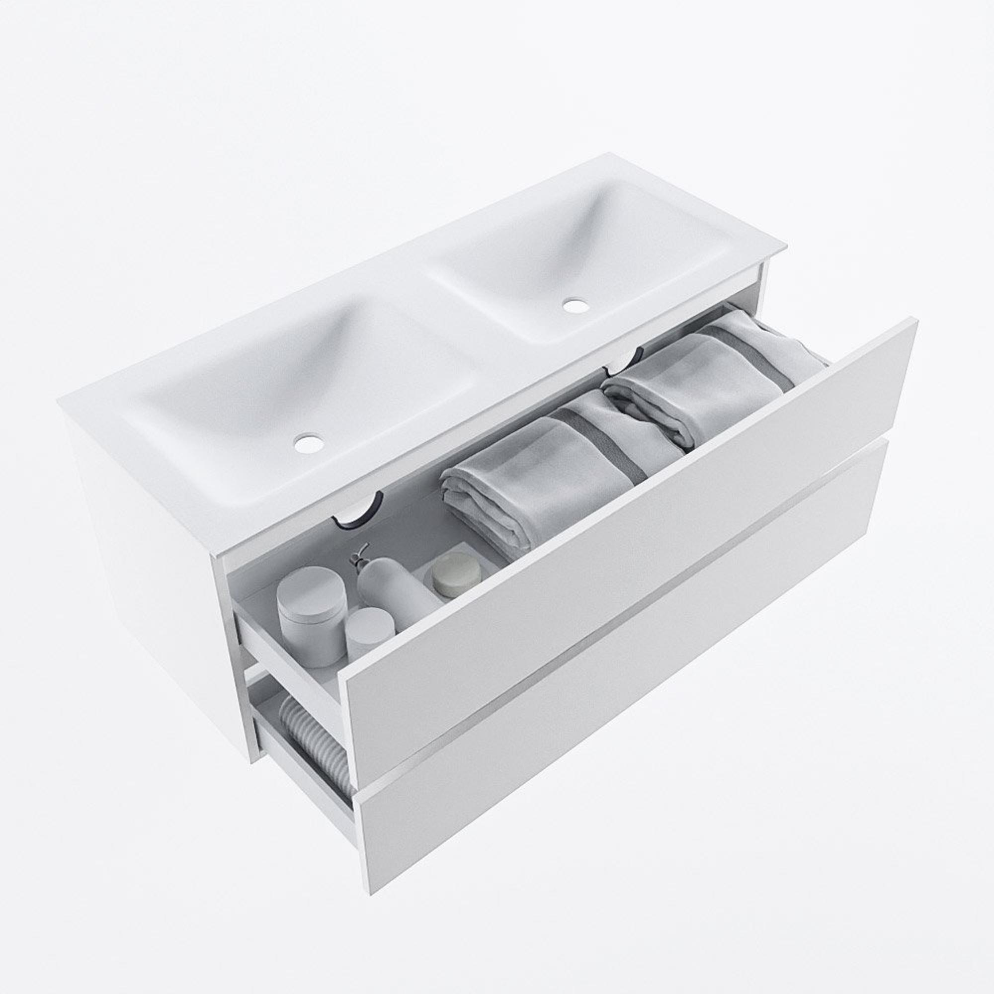 MONDIAZ VICA Meuble de salle de bains 120 cm sous-meuble Talc 2 tiroirs. Lavabo CLOUD double 2 trous de robinet, couleur Talc.