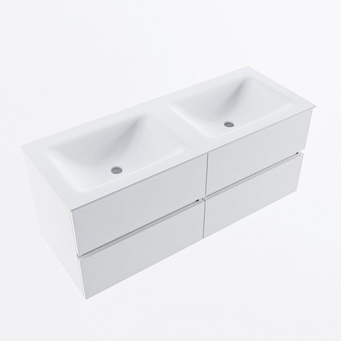 MONDIAZ VICA meuble sous lavabo 120cm Talc 4 tiroirs. Lavabo CLOUD double 2 trous de robinet, couleur Talc.