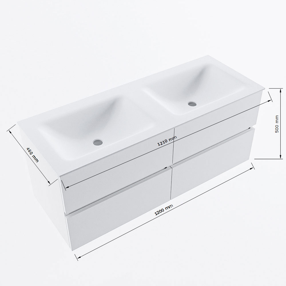 MONDIAZ VICA meuble sous lavabo 120cm Talc 4 tiroirs. Lavabo CLOUD double sans trou de robinet, couleur Talc.