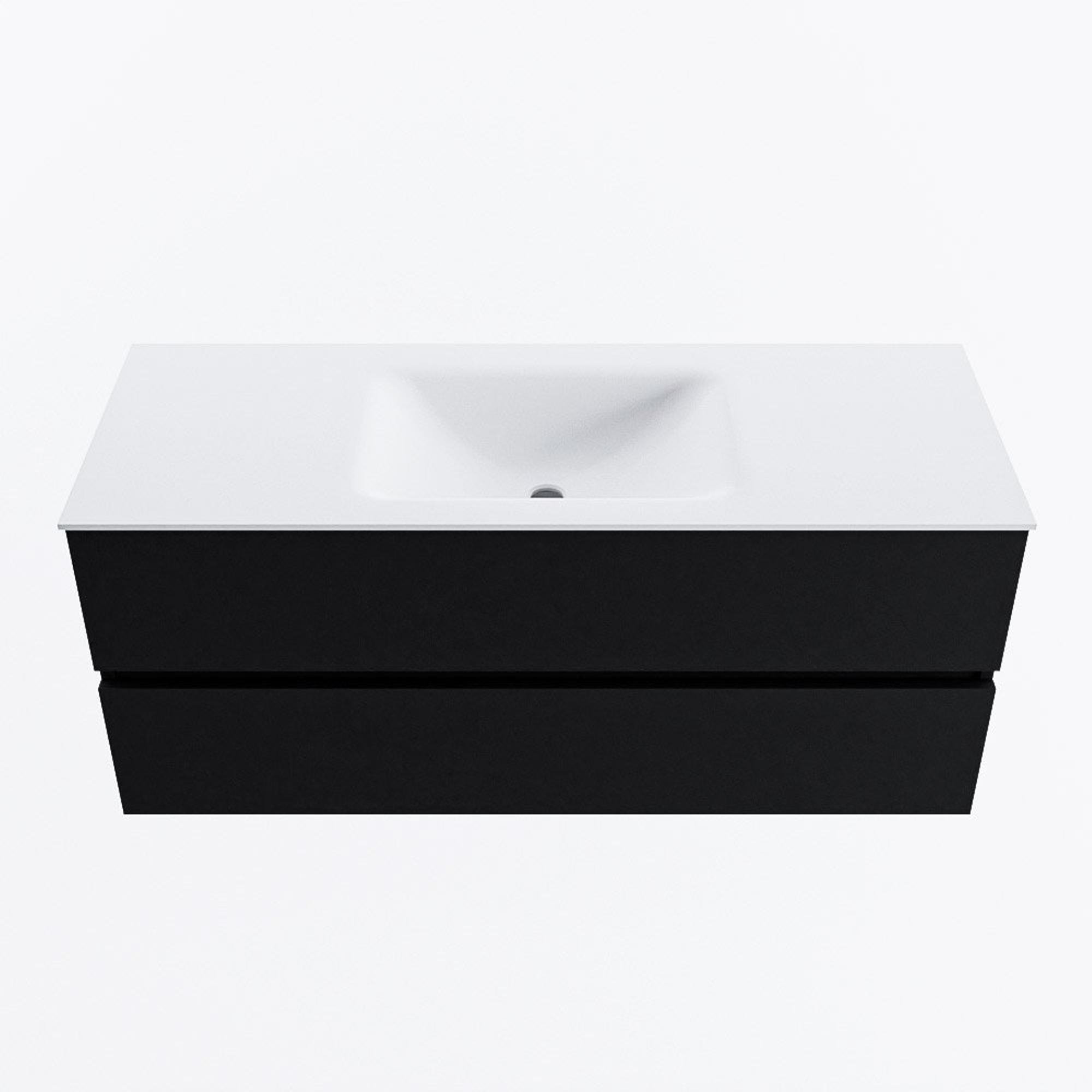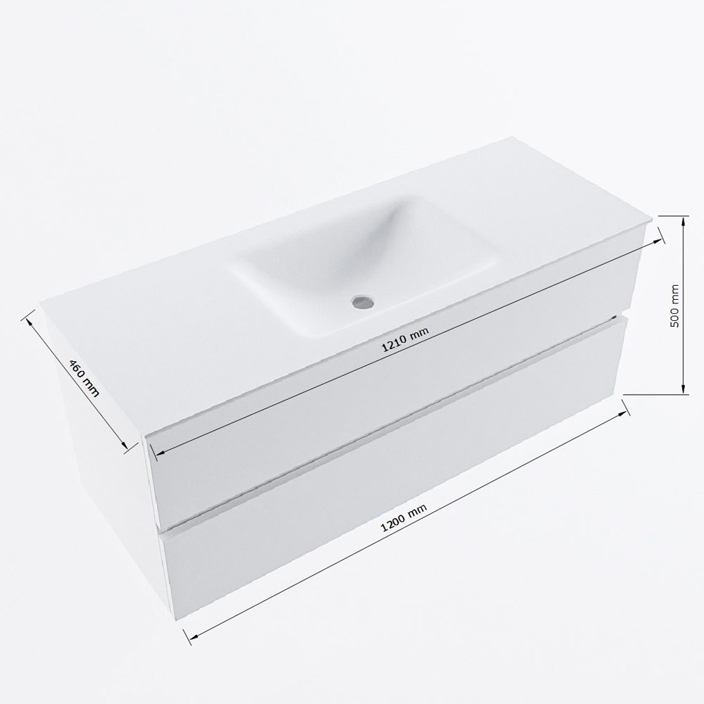 MONDIAZ VICA meuble sous lavabo 120cm Urban 2 tiroirs. Lavabo CLOUD centre 1 trou de robinet, couleur Talc.