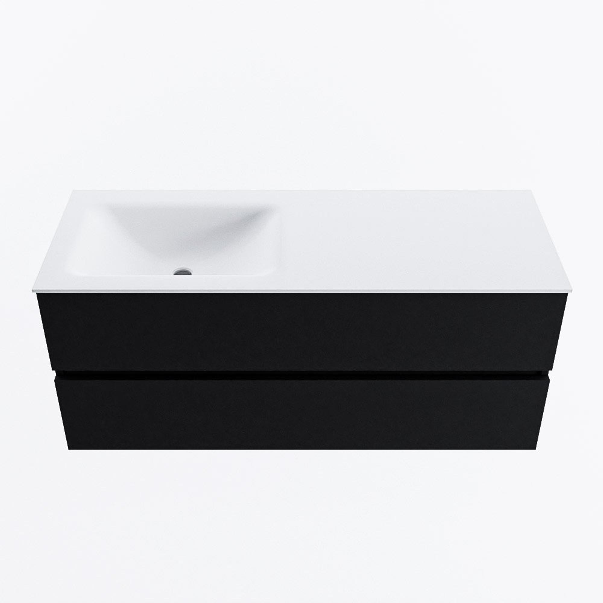 MONDIAZ VICA meuble sous lavabo 120cm Urban 2 tiroirs. Lavabo CLOUD gauche sans trou de robinet, couleur Talc.
