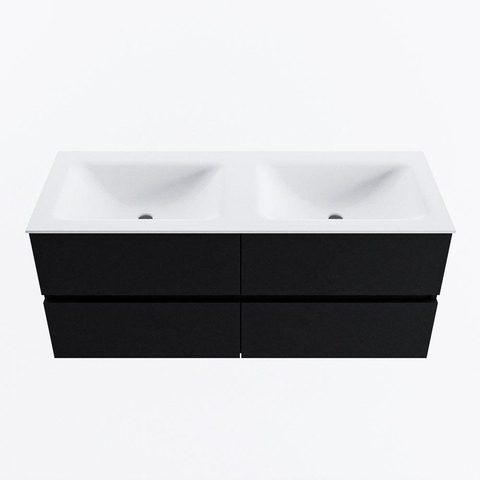 MONDIAZ VICA meuble sous lavabo 120cm Urban 4 tiroirs. Lavabo CLOUD double sans trou de robinet, couleur Talc.