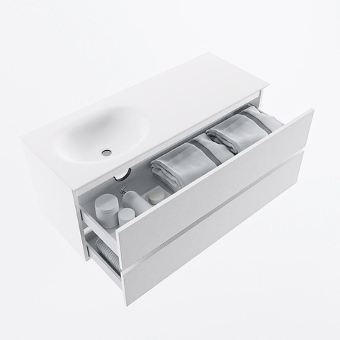 MONDIAZ VICA 120cm meuble de salle de bains sous-meuble Talc 2 tiroirs. Lavabo MOON gauche 1 trou de robinet, couleur Talc.