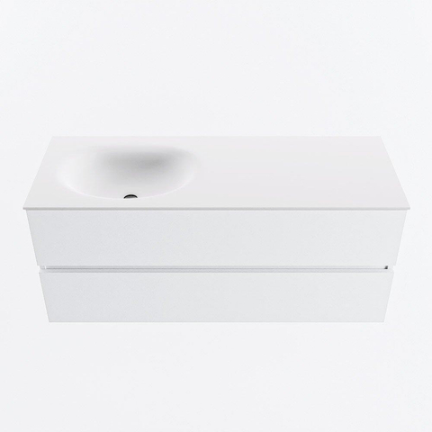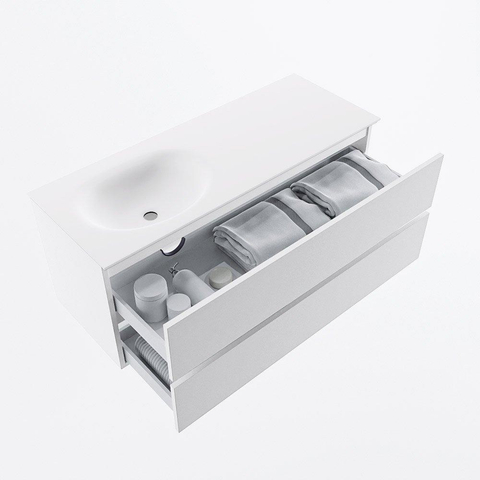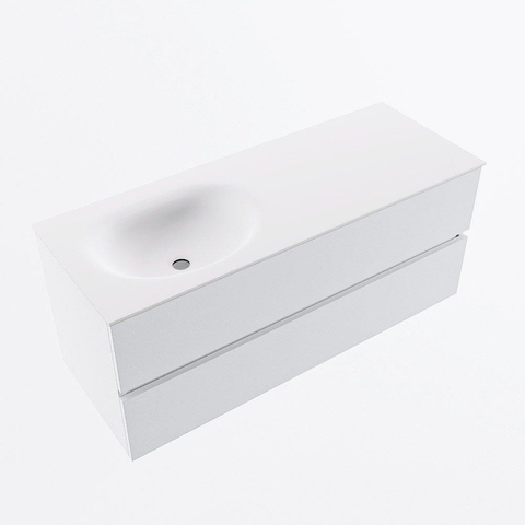 MONDIAZ VICA Meuble de salle de bains 120cm sous-meuble Talc 2 tiroirs. Lavabo MOON gauche sans trou de robinet, couleur Talc.