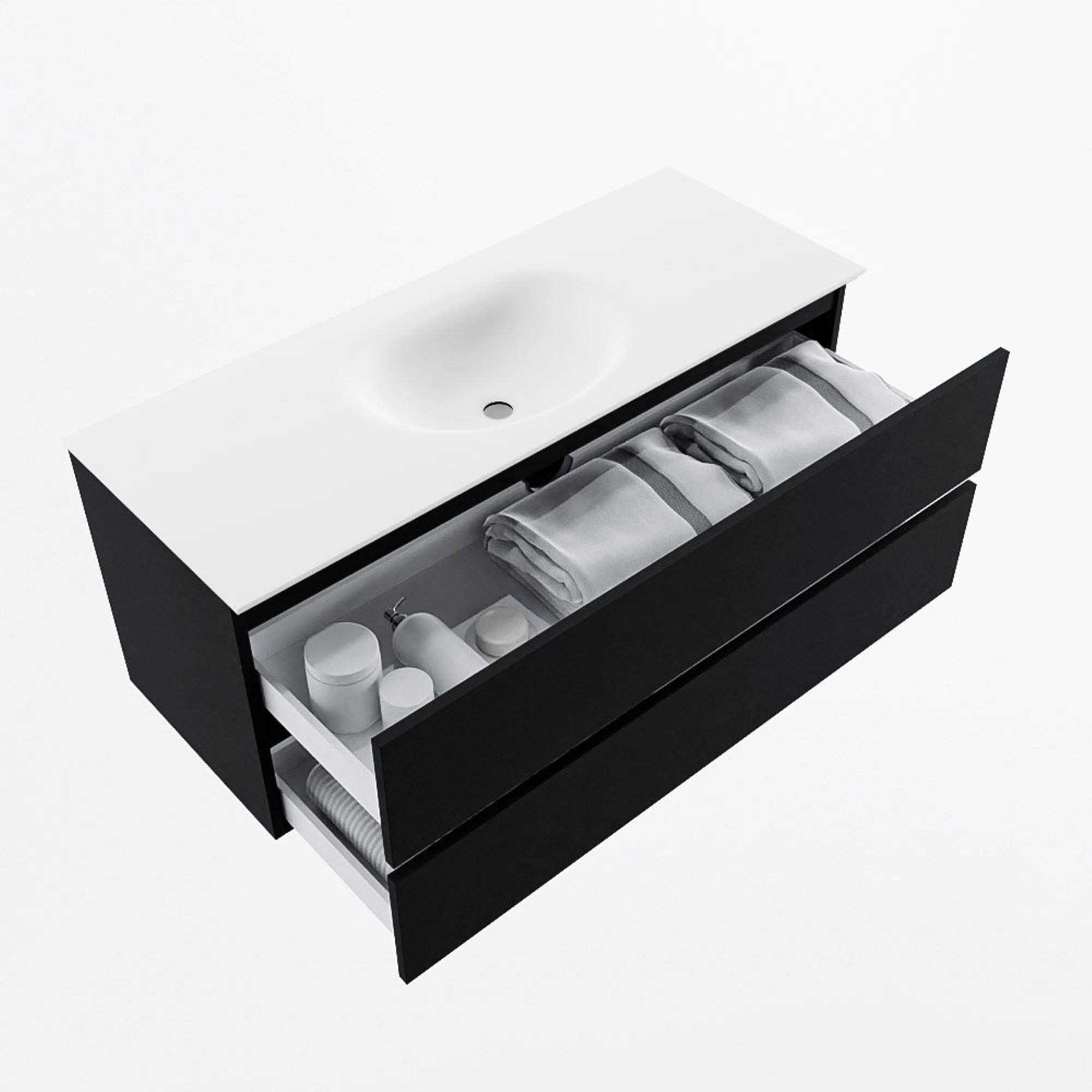 MONDIAZ VICA meuble sous lavabo 120cm Urban 2 tiroirs. Lavabo MOON centre 1 trou de robinet, couleur Talc.