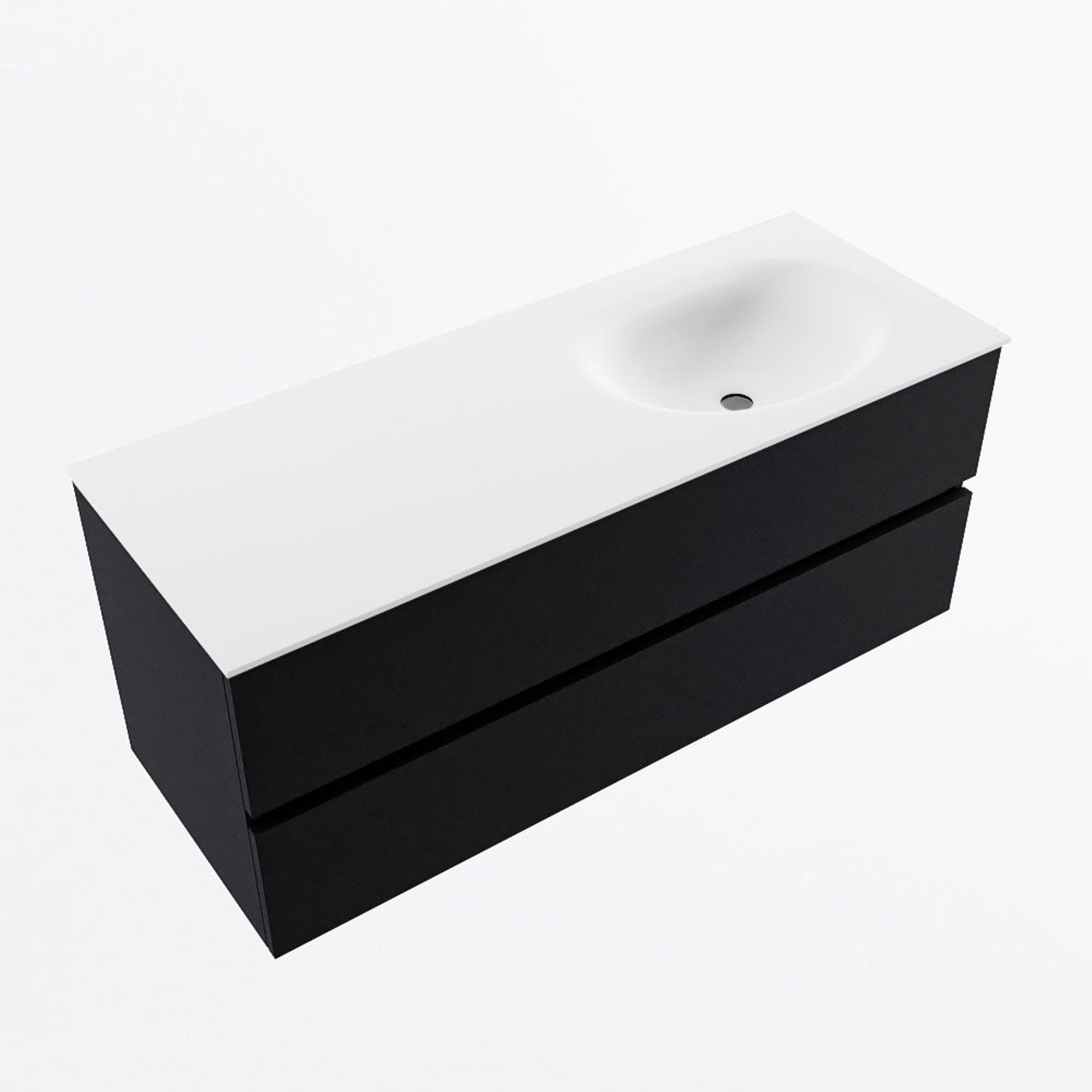 MONDIAZ VICA 120cm meuble de salle de bains caisson bas Urban 2 tiroirs. Lavabo MOON à droite 1 trou de robinet, couleur Talc.