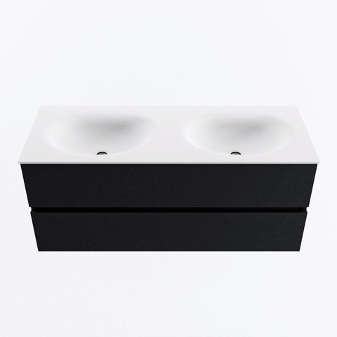 MONDIAZ VICA meuble sous lavabo 120cm Urban 2 tiroirs. Lavabo MOON double sans trou de robinet, couleur Talc.