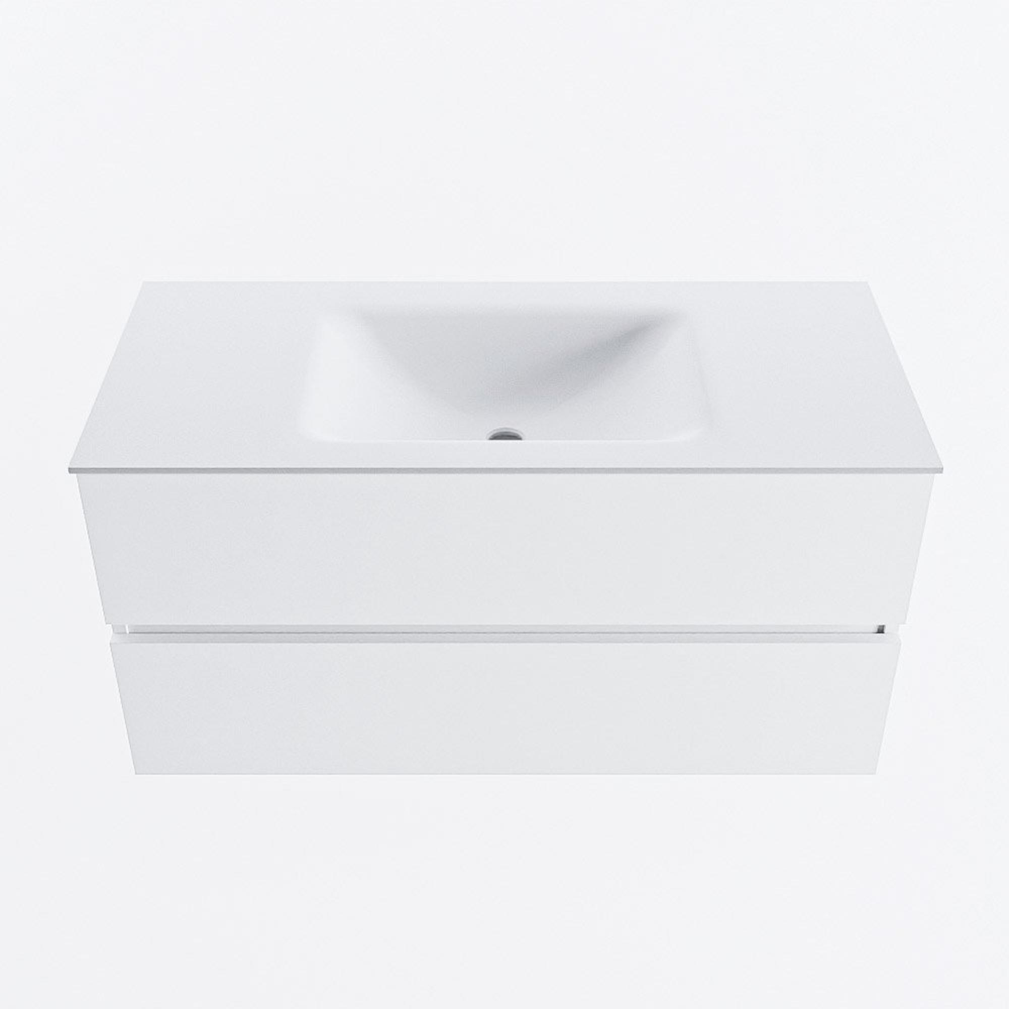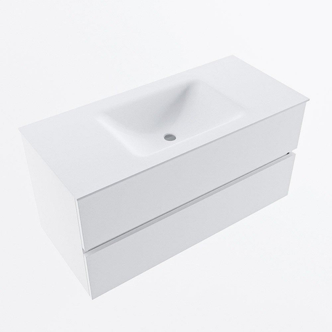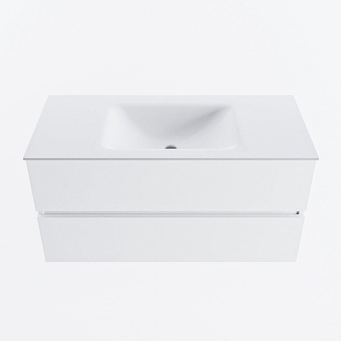 Avec ce meuble de salle de bains de 100 cm de large, vous créez en une seule fois du calme, de l’espace et une apparence luxueuse dans votre salle de bains. La douce couleur Talc a un aspect moderne et clair, ce qui permet au meuble de trouver parfaitement sa place aussi bien dans une salle de bains urbaine compacte que dans une salle de bains familiale spacieuse. Grâce au large double tiroir, vous disposez de beaucoup de place pour les serviettes, les produits de soin et les essentiels du quotidien, de sorte que le plan de lavabo reste bien rangé. Le lavabo placé au centre avec un seul trou de robinet est idéal si vous souhaitez installer un beau mitigeur de lavabo simple et que vous aimez avoir confortablement de l’espace autour de la cuve. Ce meuble est un choix judicieux si vous recherchez un look épuré sans poignées, beaucoup d’espace de rangement et une qualité solide qui reste belle longtemps, sans devoir faire de concession sur la facilité d’utilisation au quotidien.